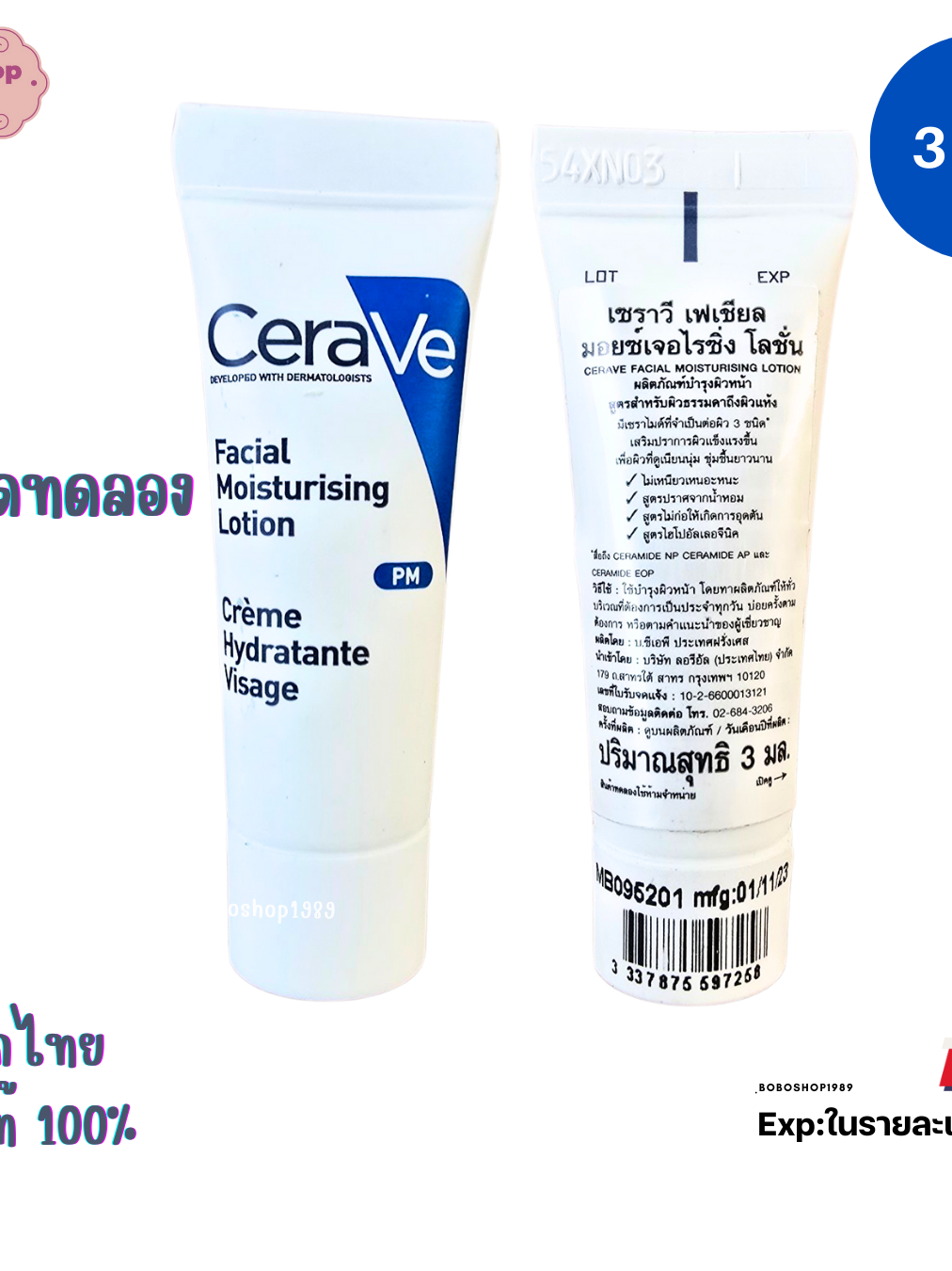 ขนาดทดลอง CERAVE PM Facial Moisturizing Lotion ครีมทาหน้า โลชั่น บำรุงผิว 3 ml