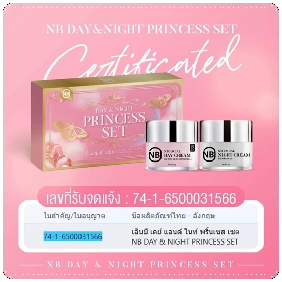 ครีมNB Princess set day&night ครีมครูเบียร์เนเงิน 1แถม1ได้2กระปุกทั้งวันและกลางคืน ยกเซ็ต