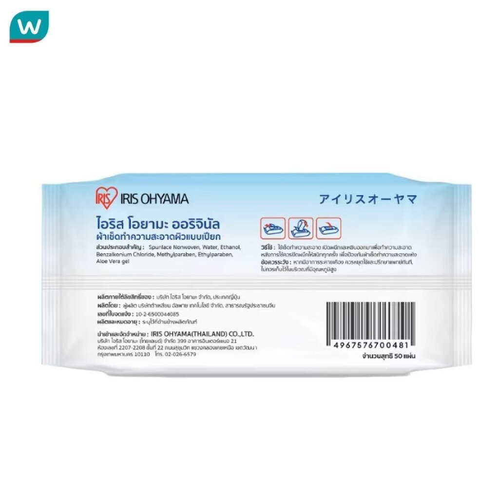 Iris Ohyama ไอริส โอยามะ ผ้าเช็ดทำความสะอาดแบบเปียก สูตรออรินัล 50 แผ่น