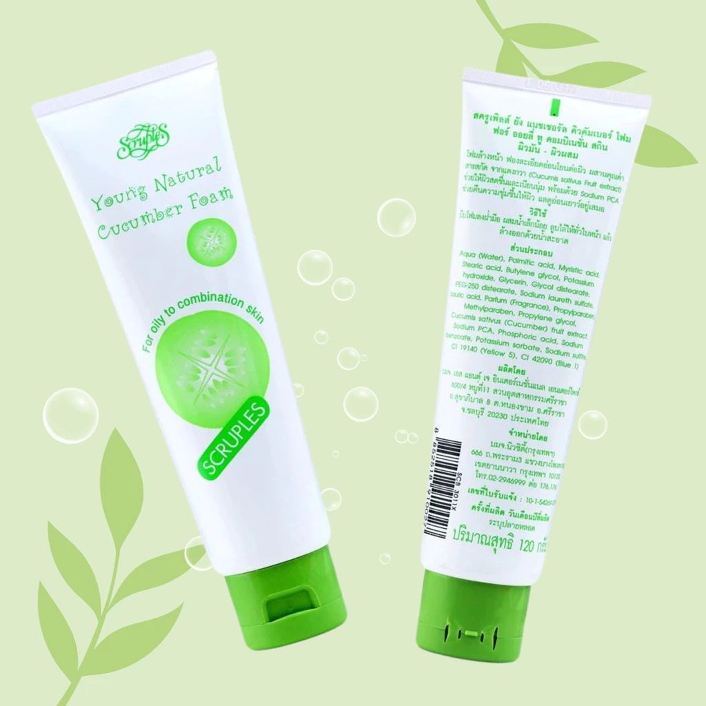 Scruples Young Natural Cucumber Foam สครูเพิลส์ โฟมล้างหน้า ผสมสารสกัดแตงกวา ผิวกระชับ เรียบเนียน สะอาดล้ำลึก SCB-3011X