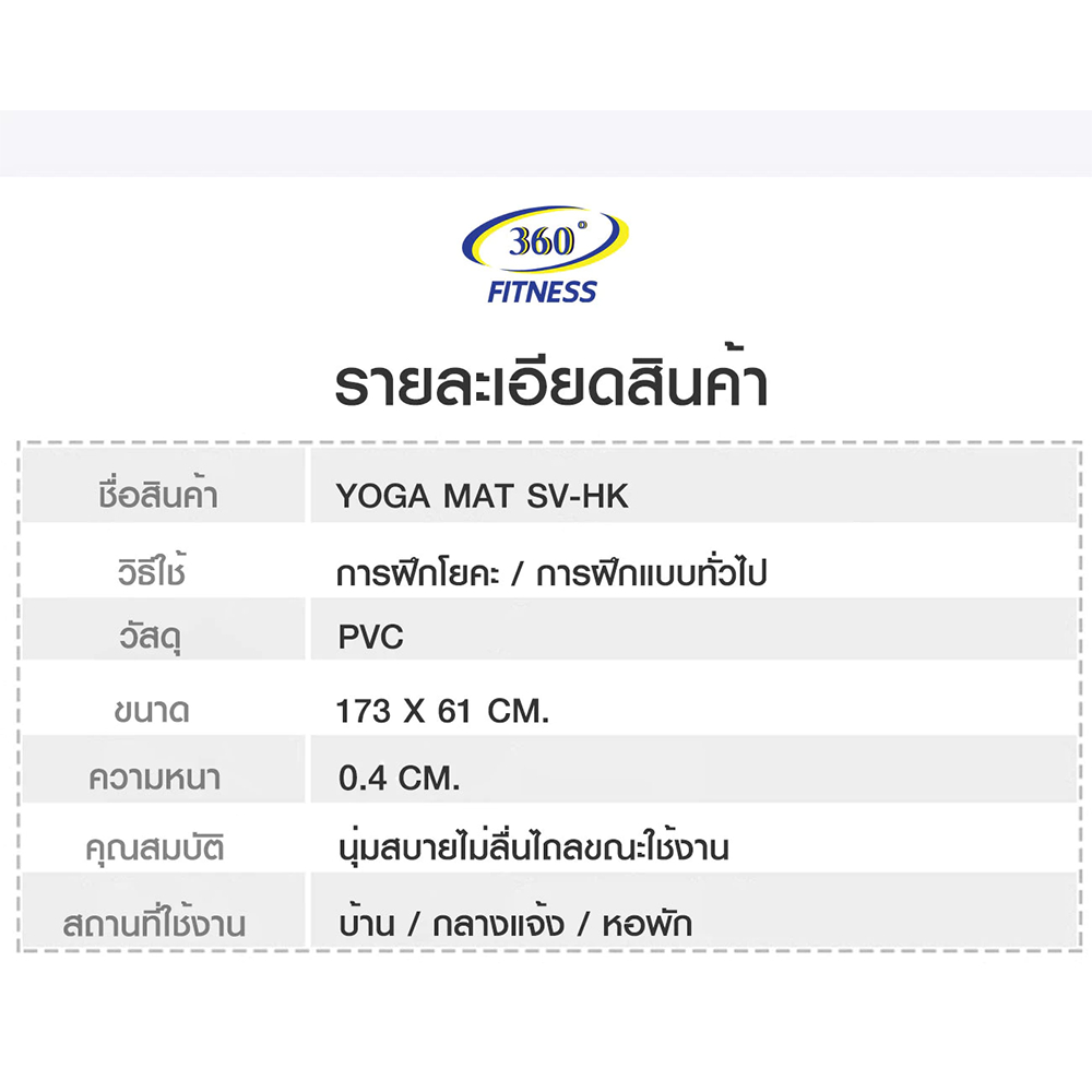 360 Ongsa fitness เสื่อโยคะ ความหนา 0.4cm Yoga Mat รุ่น SV-HK 0.4cm Blue