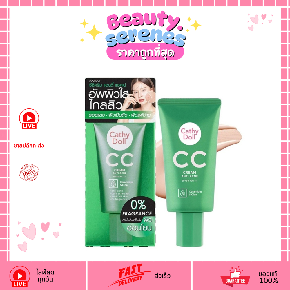 เคที่ดอลล์ ซีซี ครีม แอนตี้ แอคเน่ Cathy Doll CC Cream Anti Acne SPF50 PA+++ 50ml ซีซีครีมกันสิว
