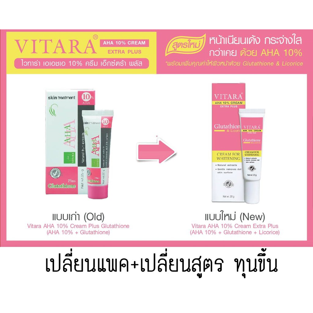 VITARA AHA 10% CREAM PLUS GLUTATHIONE 20 g. ไวทาร่า เอเอชเอ ครีม กลูต้า #137