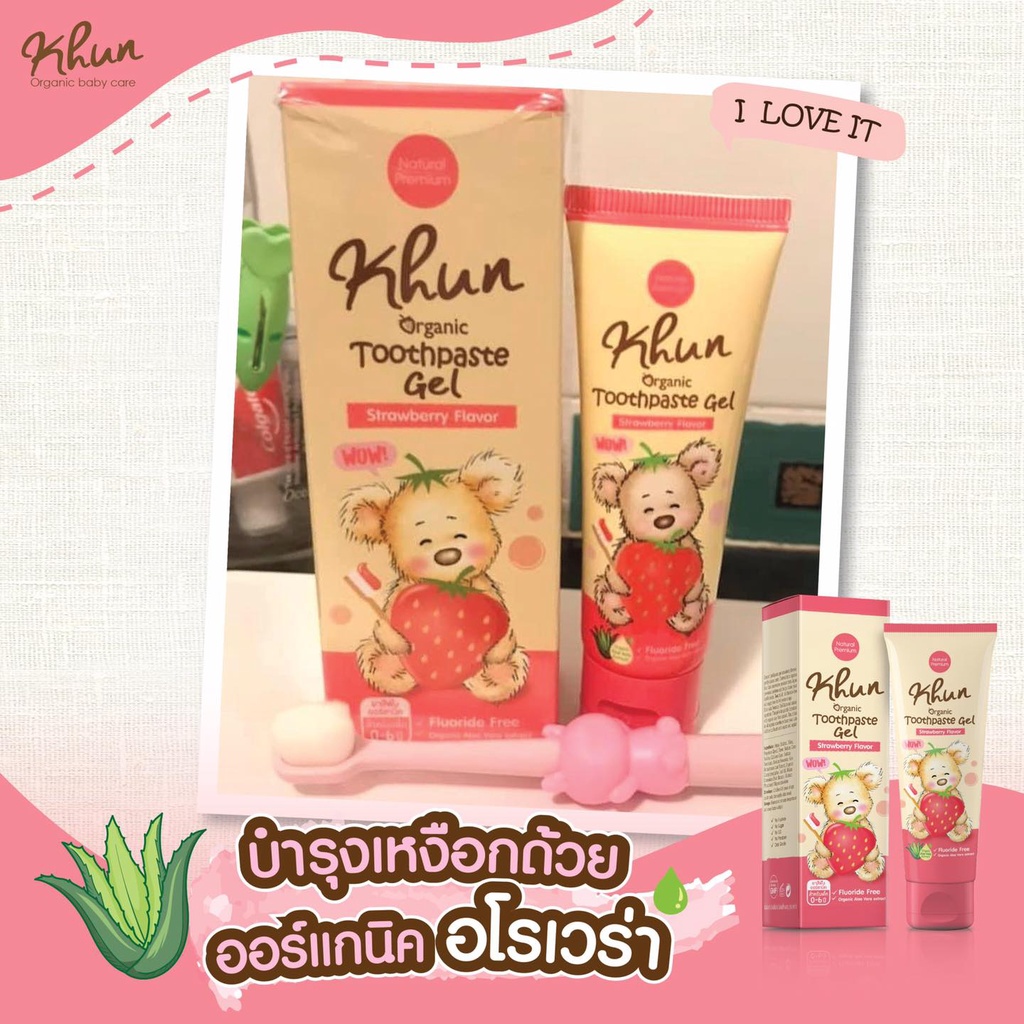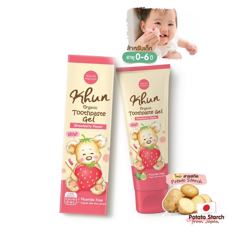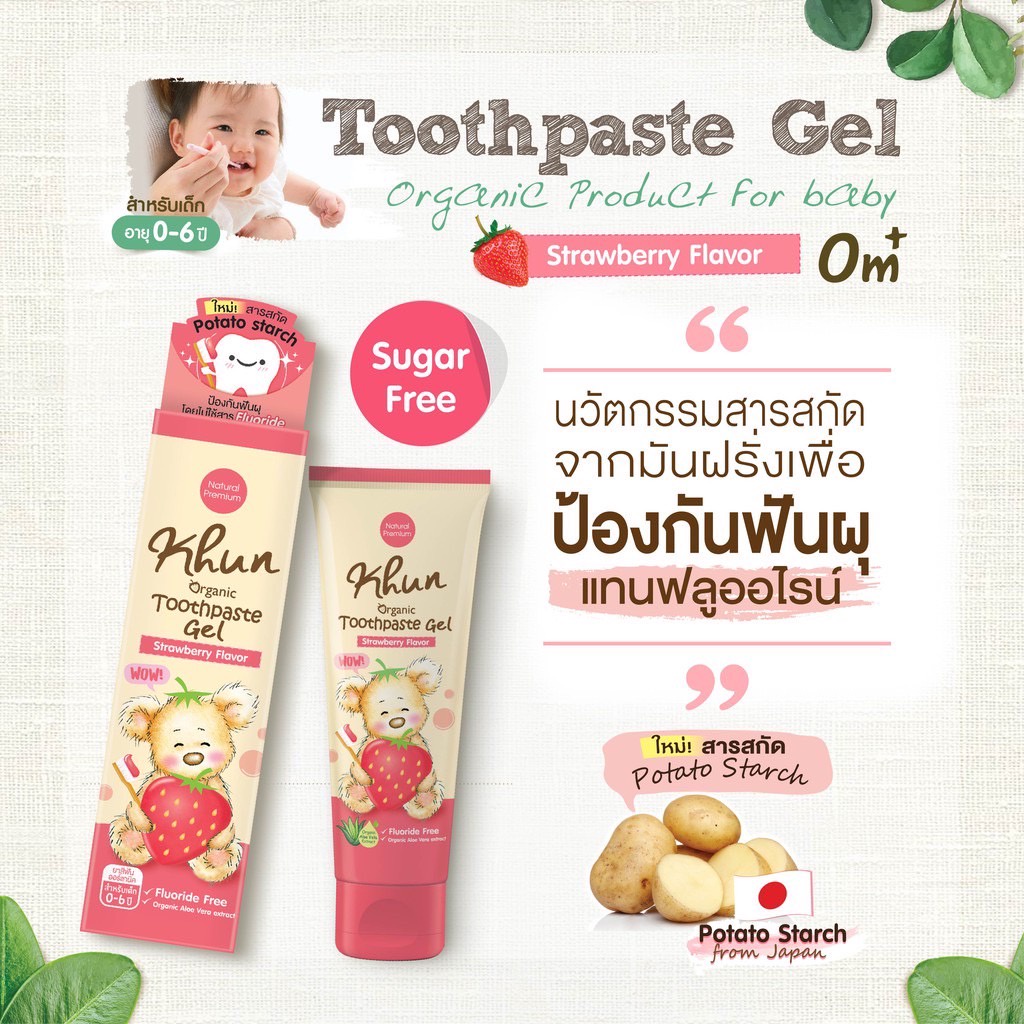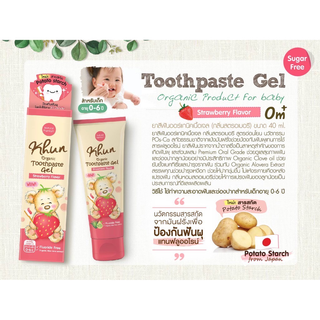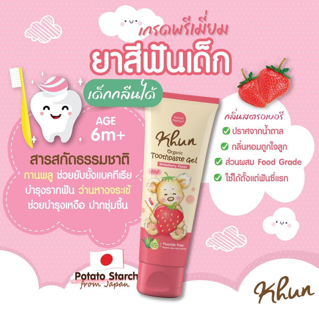 KHUN ยาสีฟันออร์แกนิคเด็ก กลืนได้ กลิ่นสตรอว์เบอร์รี 40 ml.
