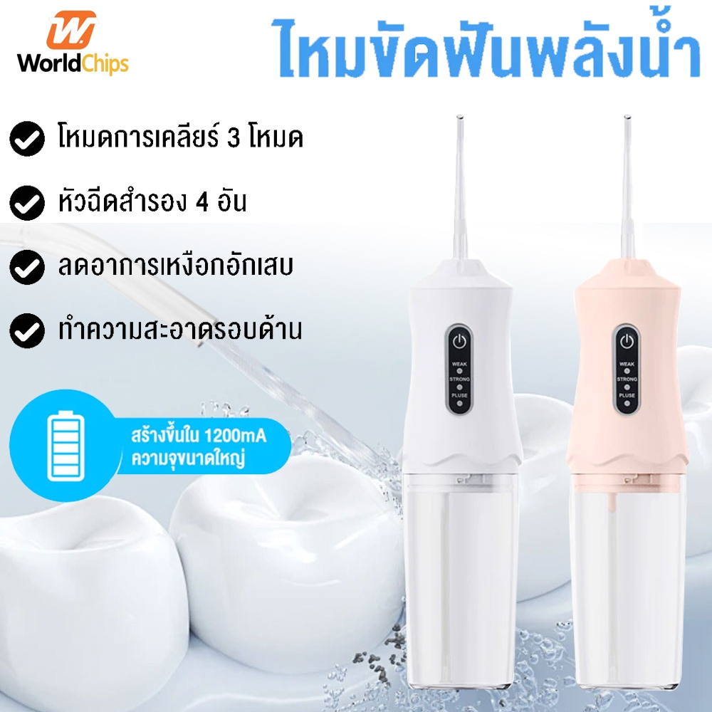 Worldchips เครื่องล้างฟันพกพา ไหมขัดฟันพลังน้ำ 240ML แรงดันน้ำ 80-120 PSI ไหมขัดฟันพลังน้ำ ที่ขูดหินปูน เครื่องฉีดฟัน แ