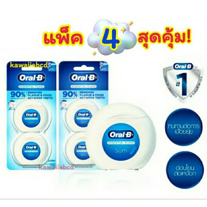 🐬โปรฯสุดคุ้ม!🐬Oral B Essential Floss 50ม.ไหมขัดฟัน ออรัล บี เอสเซนเชียล ฟลอส แปรงสีฟัน Victory ฟันขาว ทำความสะอาดฟัน
