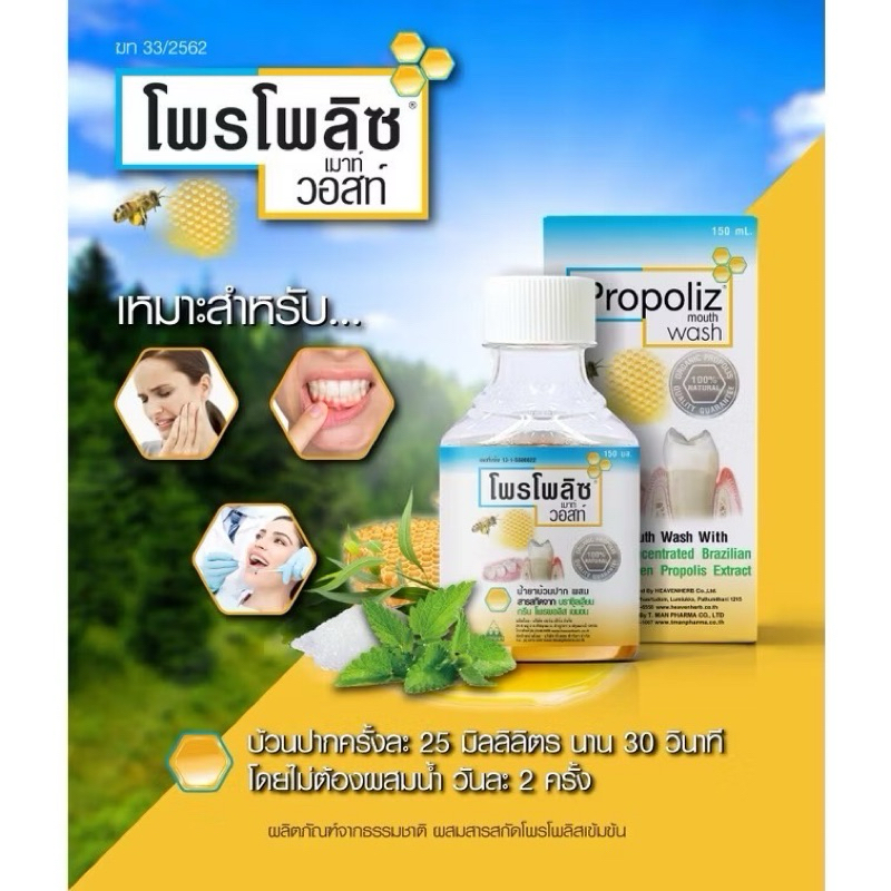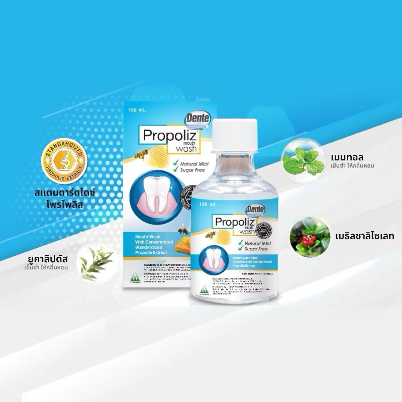 ((น้ำยาบ้วนปากขนาด 150ml)) PROPOLIZ DENTE MOUTH WASH น้ำยาบ้วนปาก โพรโพลิซ เดนเต้