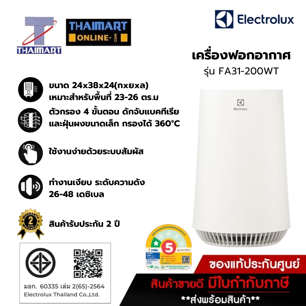 ELECTROLUX รุ่นใหม่ !! 2022 เครื่องฟอกอากาศ 23-26 ตารางเมตร Electrolux FA31-200WT | ไทยมาร์ท THAIMART