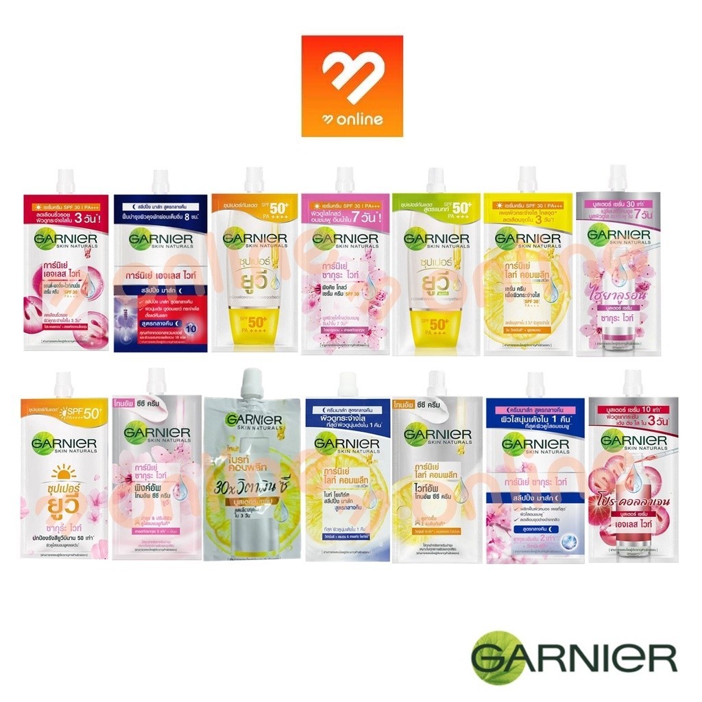 #ยกกล่อง Garnier Cream 7ml. การ์นิเย่ ครีมบำรุงผิวหน้า กลางวัน กลางคืน ไลท์ คอมพลีท ซากุระ เอจเลส ซีซี สลีปปิ้งมาส์ก