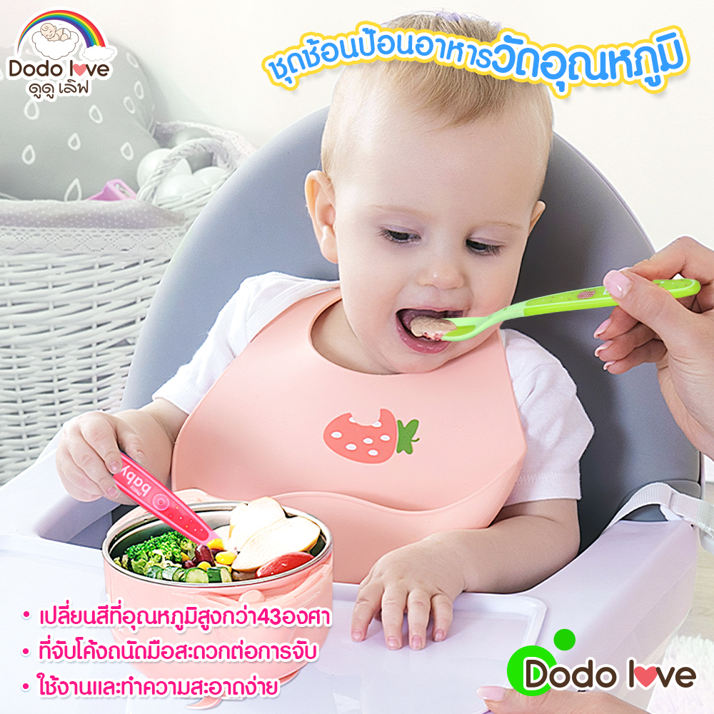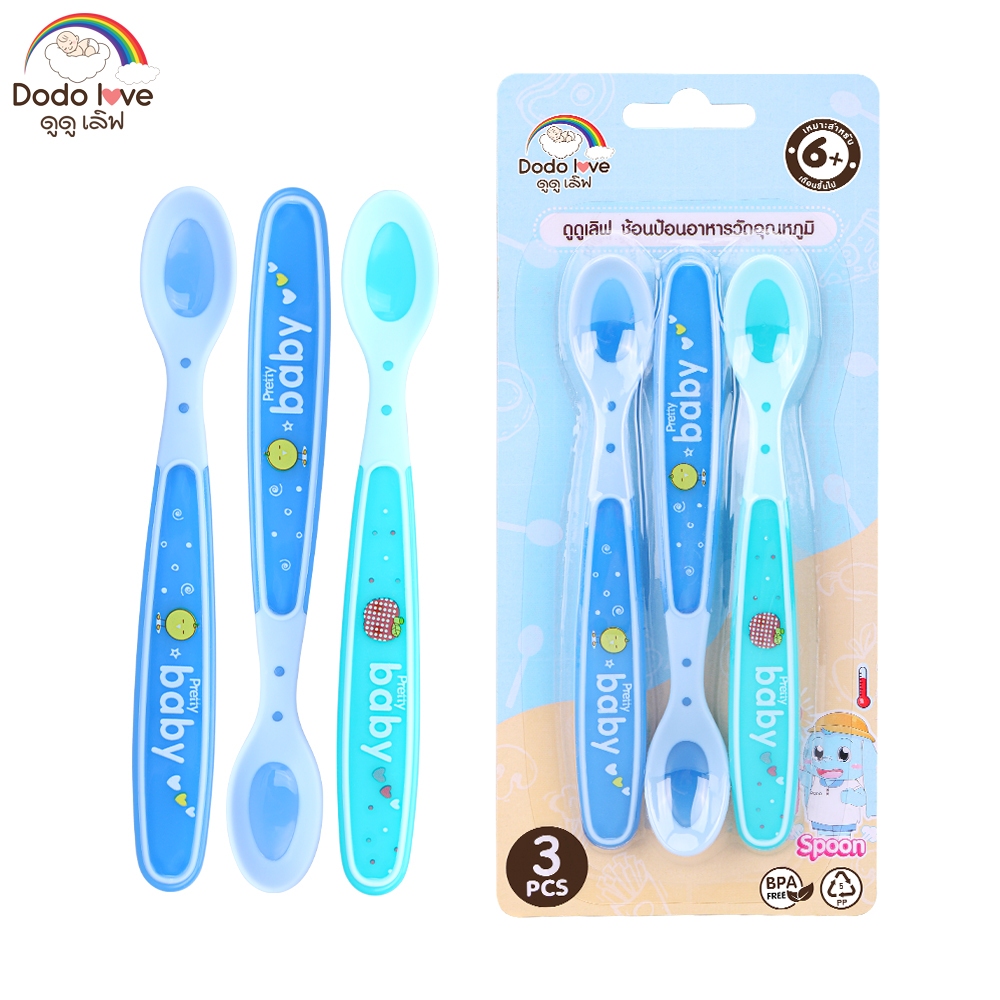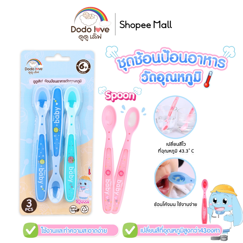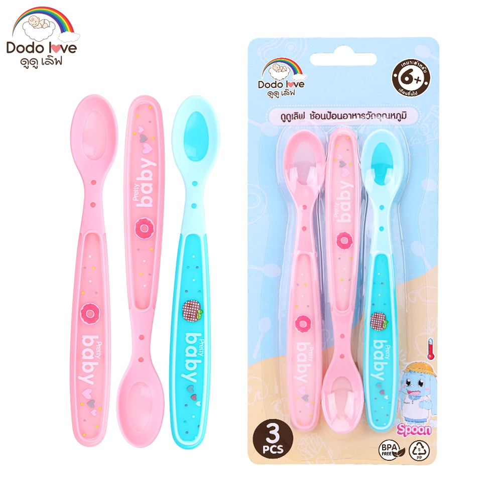 DODOLOVE ชุดช้อนป้อนอาหารวัดอุณหภูมิ เปลี่ยนสีได้ ช้อน ปลอดจากสาร BPA 1 แพ๊ค 3 ชิ้น
