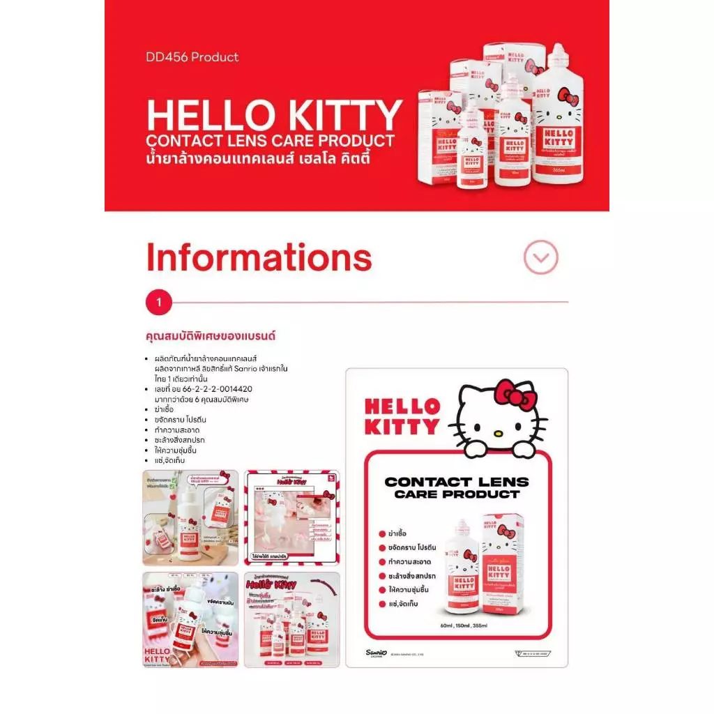 Hello Kitty น้ำยาล้างคอนแทคเลนส์ 355 ml 🧼 แช่และล้างคอนแทคเลนส์ สะอาด ปลอดภัย สำหรับทุกวัน มีอย.