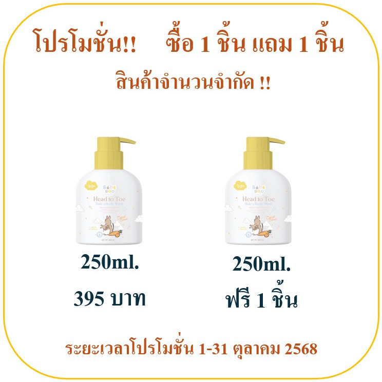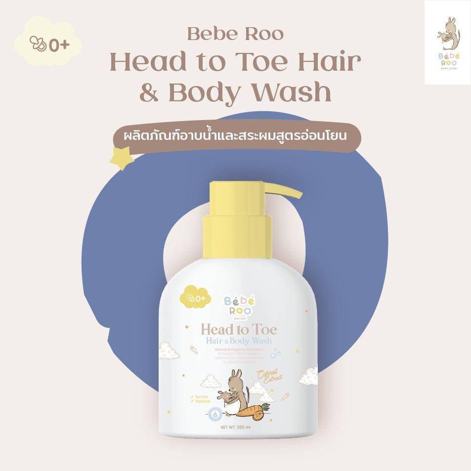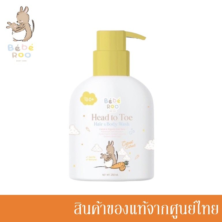 [โปร 1 แถม 1] Bebe Roo สบู่อาบน้ำ เจลอาบน้ำ สระผม สำหรับ เด็กแรกเกิด Beberoo Hair & Body Wash 250ml.