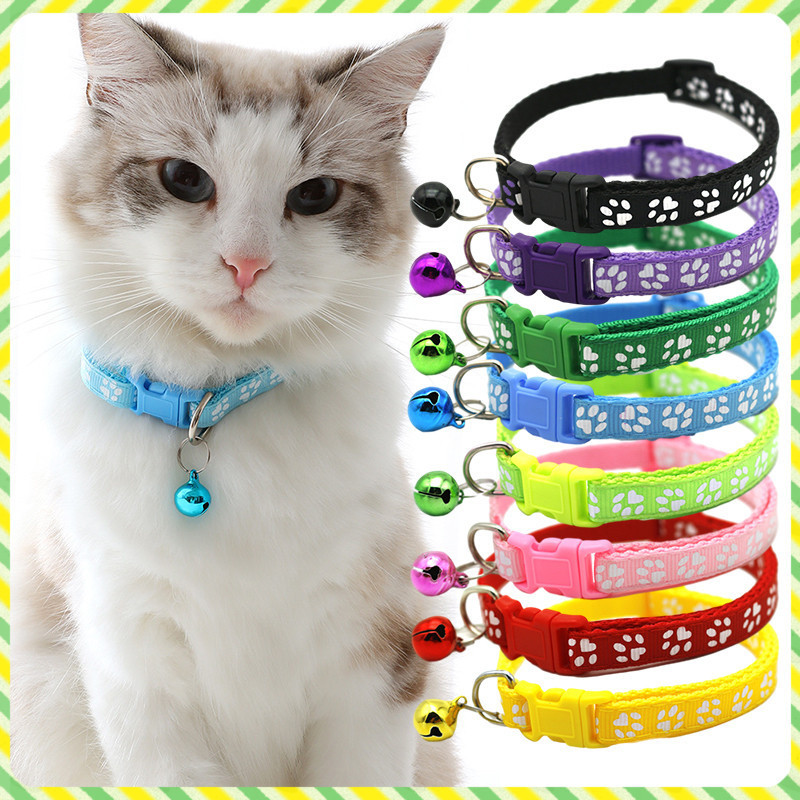 YTL ปลอกคอแมว ปลอกคอสัตว์เลี้ยง ลายอุ้งเท้าติดกระดิ่ง แบบปรับขนาดได้ 18-30 ซม.