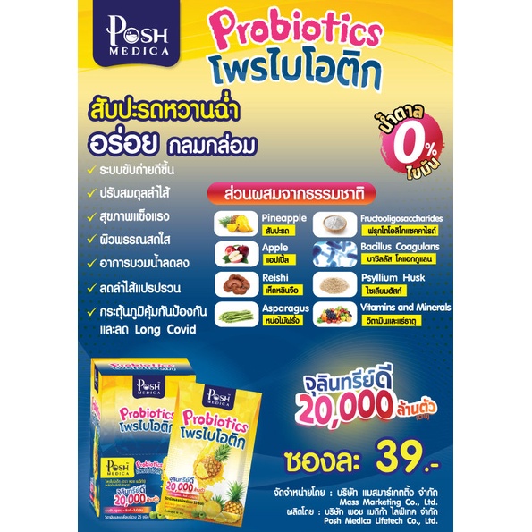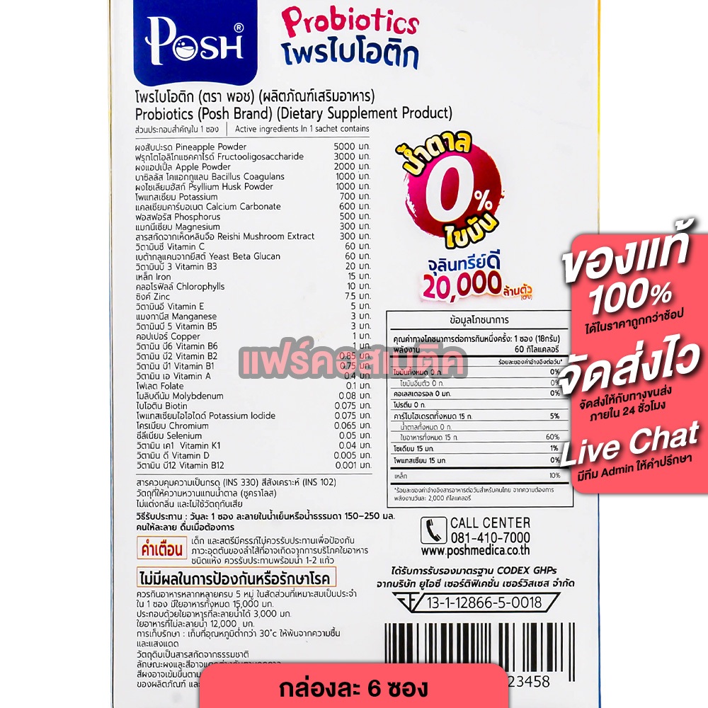 [2 กล่อง] PoshMedica Probiotics พอช เมดิก้า โพรไบโอติกสับปะรด [6 ซอง] ใยอาหารสูง [MC Plus แม็ค พลัส เดิม]