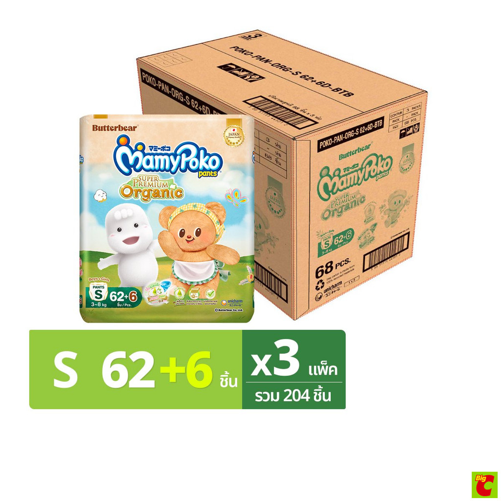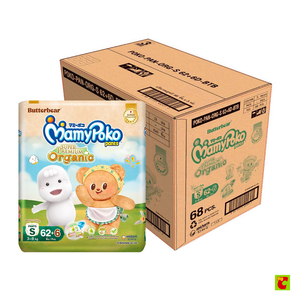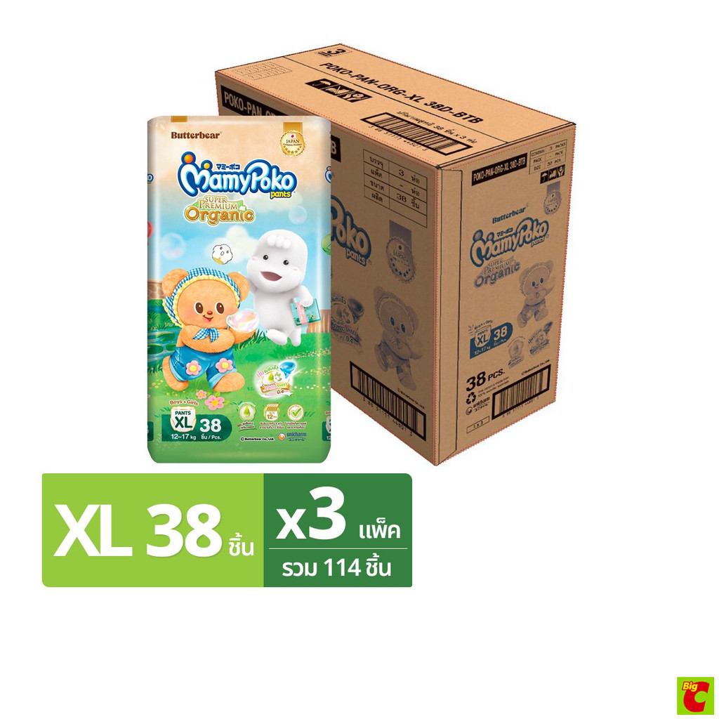 สินค้าคละแพ็คเกจเก่าใหม่ [ยกลัง] มามี่โพโค แพ้นท์ ซุปเปอร์ พรีเมียม ออร์แกนิค กางเกงผ้าอ้อม ขนาด S - XXL x 3 แพ็ค