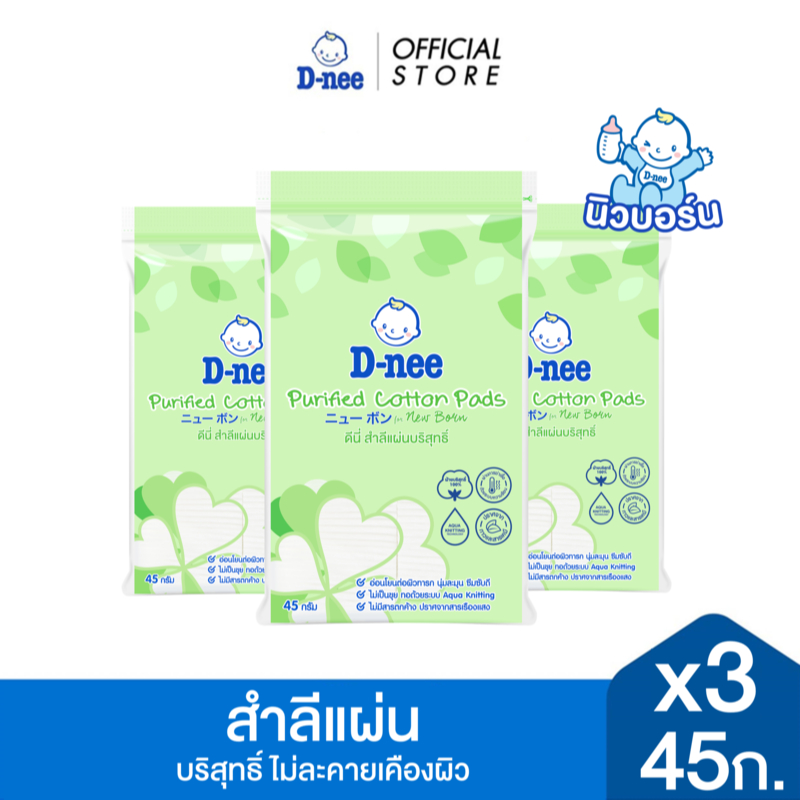 [แพ็ค3] D-nee ดีนี่ สำลีแผ่นบริสุทธิ์ 45 กรัม, x3