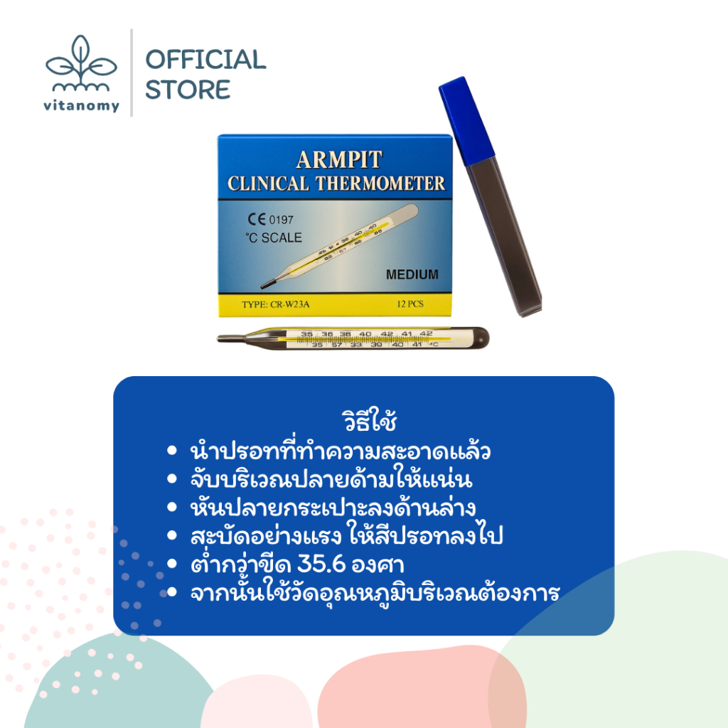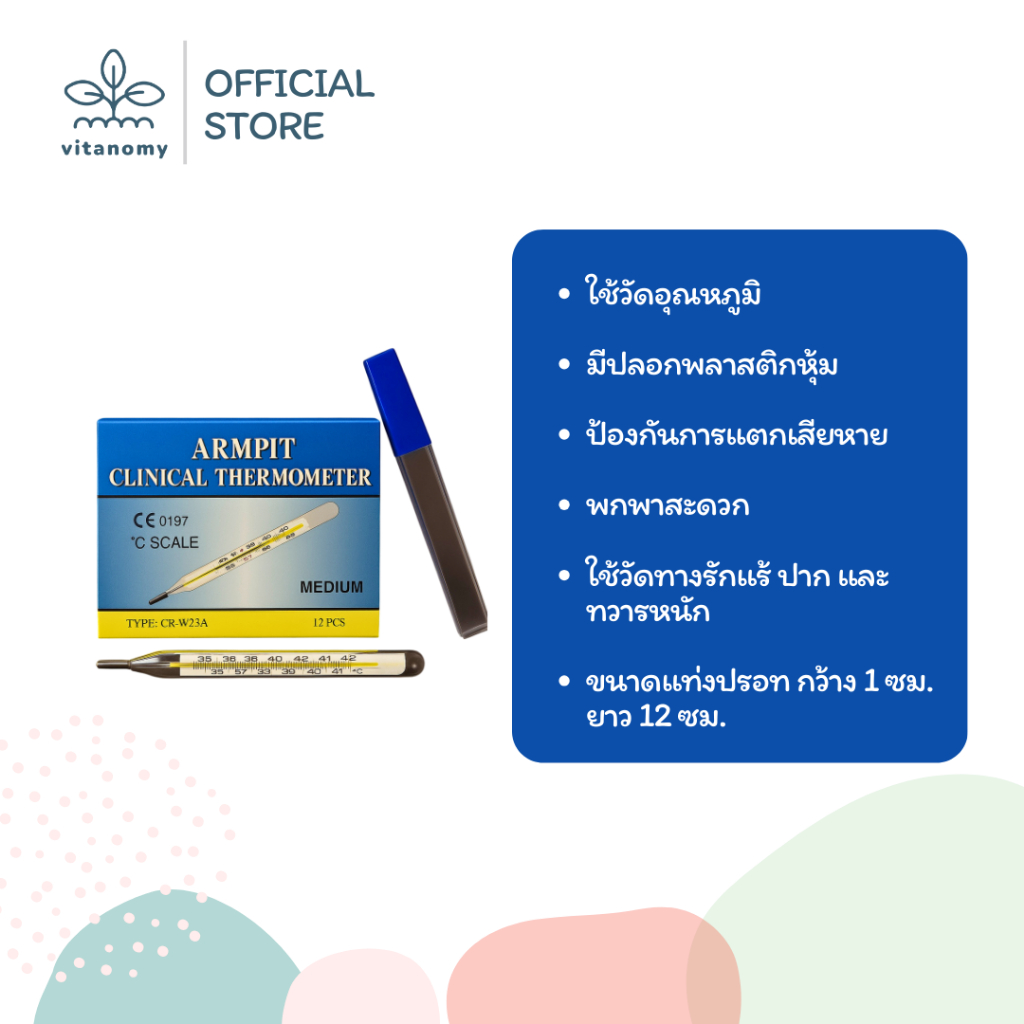 Armpit Clinical Thermometer | ปรอทวัดอุณหภูมิแท่งแก้ว วัดไข้ วัดอุณหภูมิ | 1แท่ง