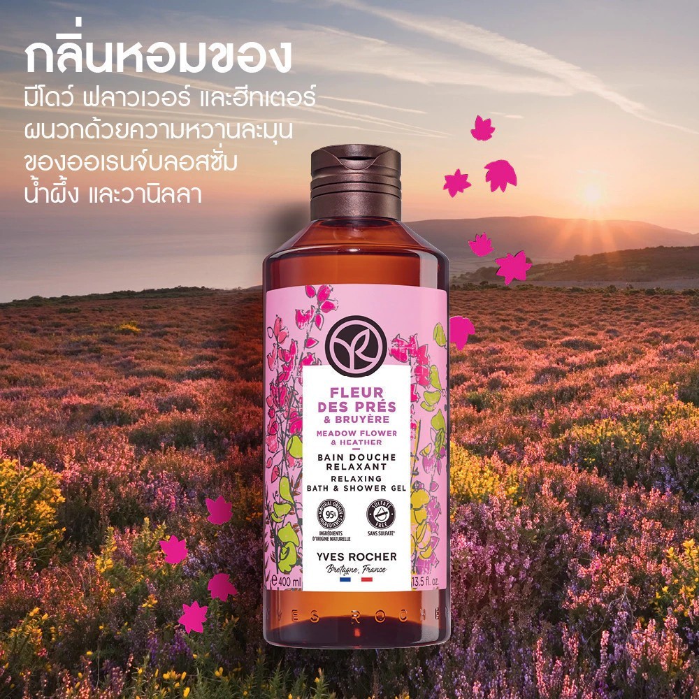 [แพ็คคู่] อีฟ โรเช Yves Rocher Meadow Flower&Heather Relaxing Bath&ShowerGel400มล.เจลอาบน้ำกลิ่นมีโดว์ ฟลาวเวอร์ฮีทเตอร์
