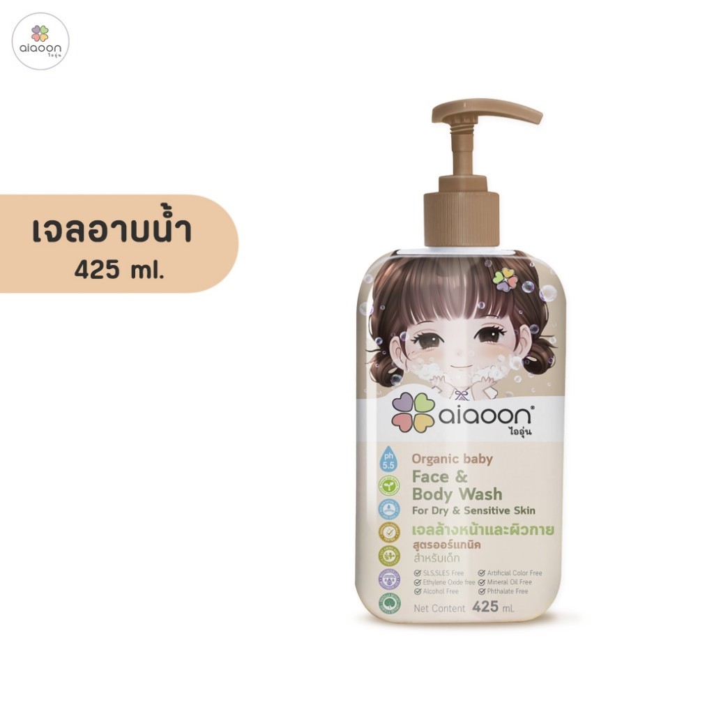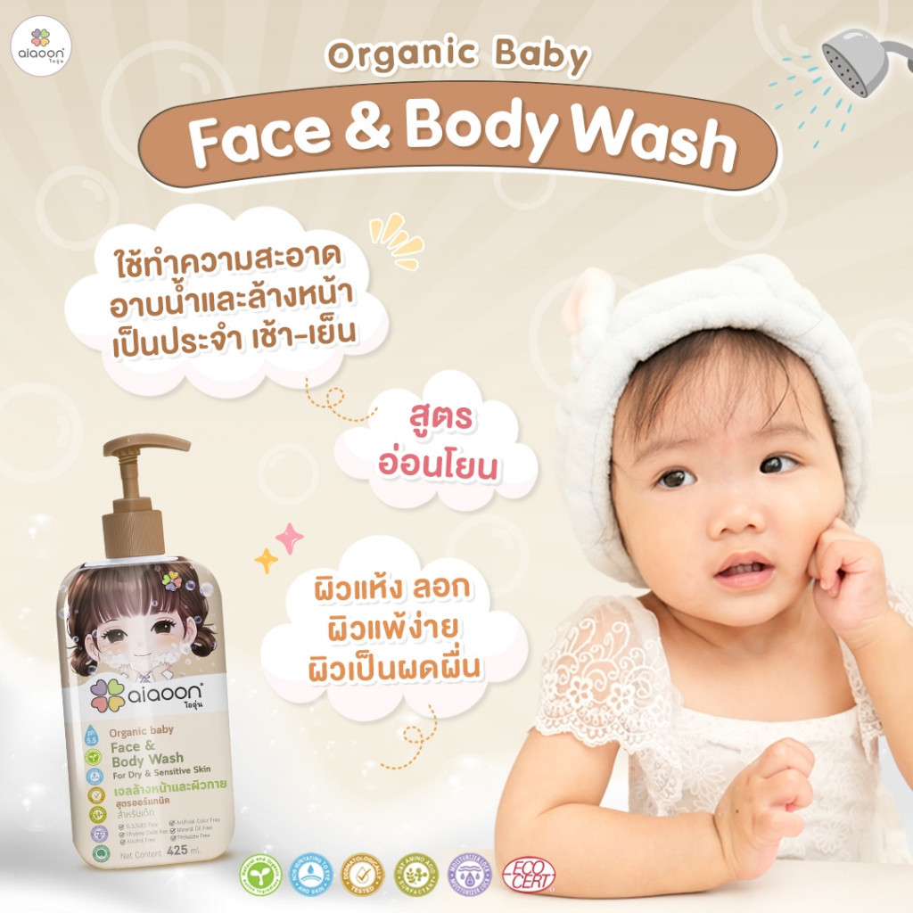ไออุ่น เจลล้างหน้าและอาบน้ำ สูตรออร์แกนิค สำหรับเด็ก (Organic Baby Face & Body Wash For Dry) 425ml.