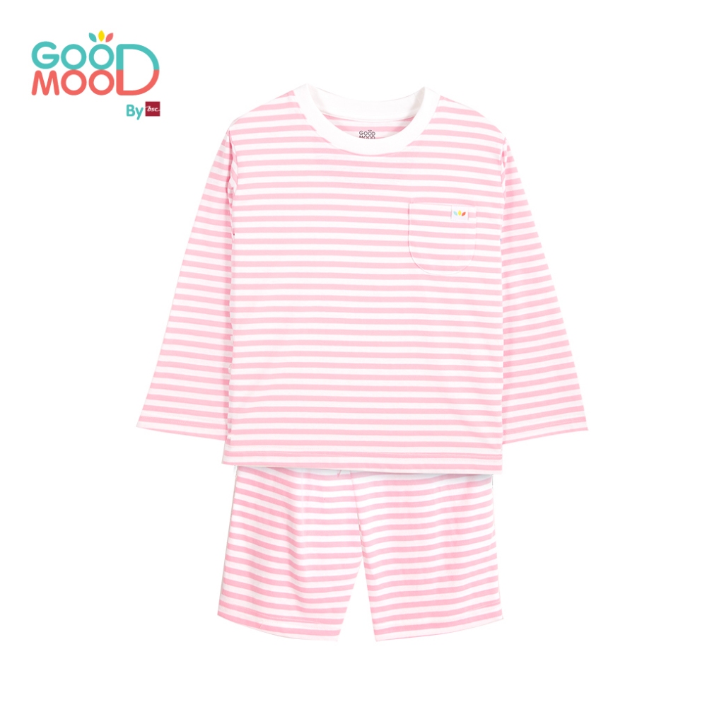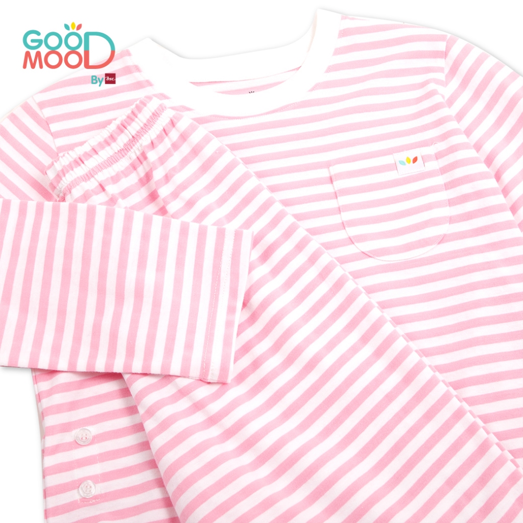 Good Mood by bsc ชุดนอนแขนยาว+กางเกงขายาวลายริ้ว สีชมพู สำหรับเด็กอายุ 4-5 ปี ผ้า Single Cotton