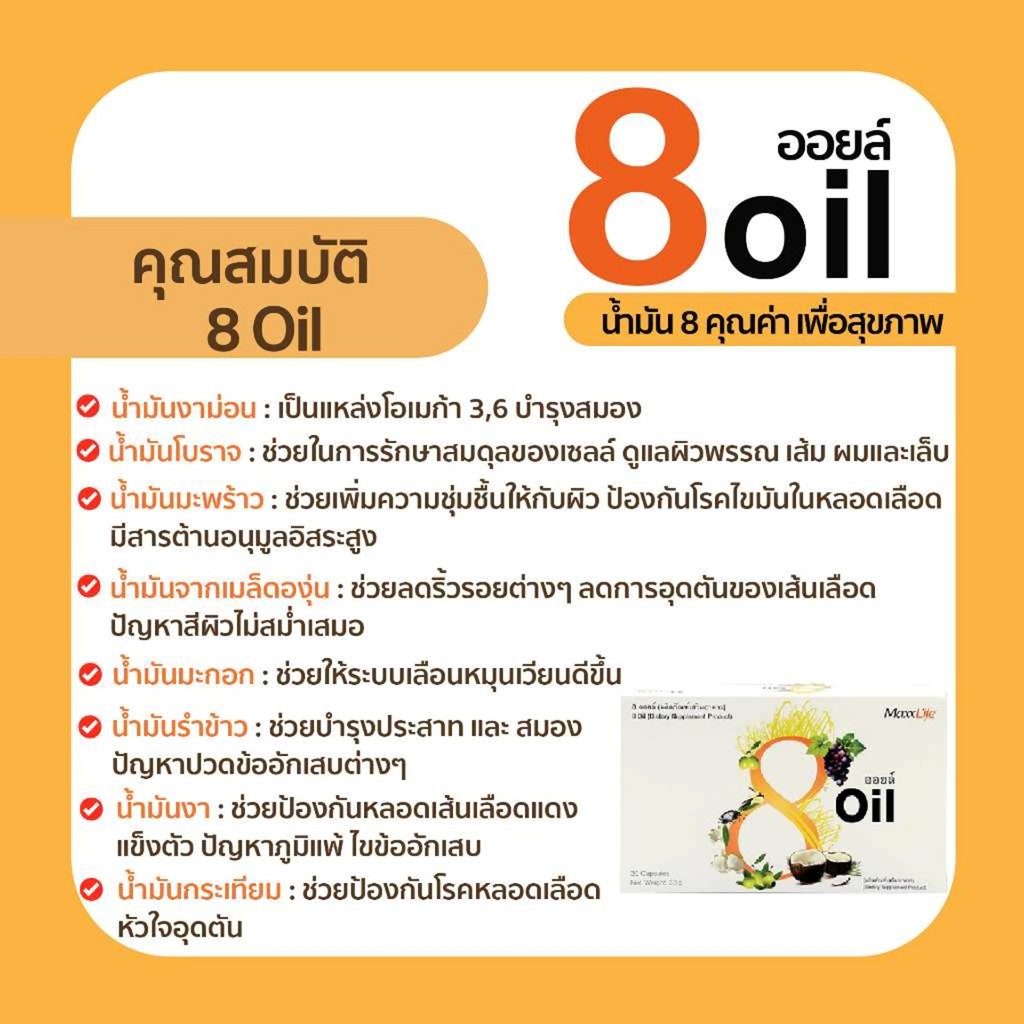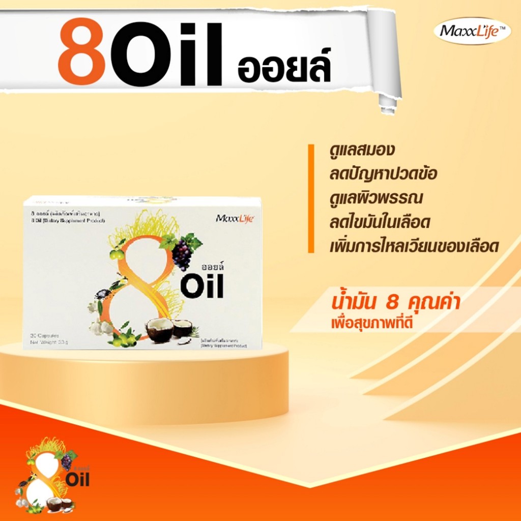 MaxxLife 8 Oil บำรุงระบบสมอง ระบบเลือด ลดไขมันสะสม ลดคลอเรสเตอรอล น้ำมัน 8 ชนิด 30 แคปซูล