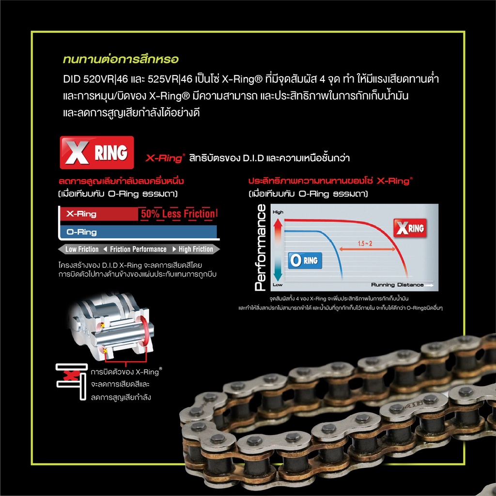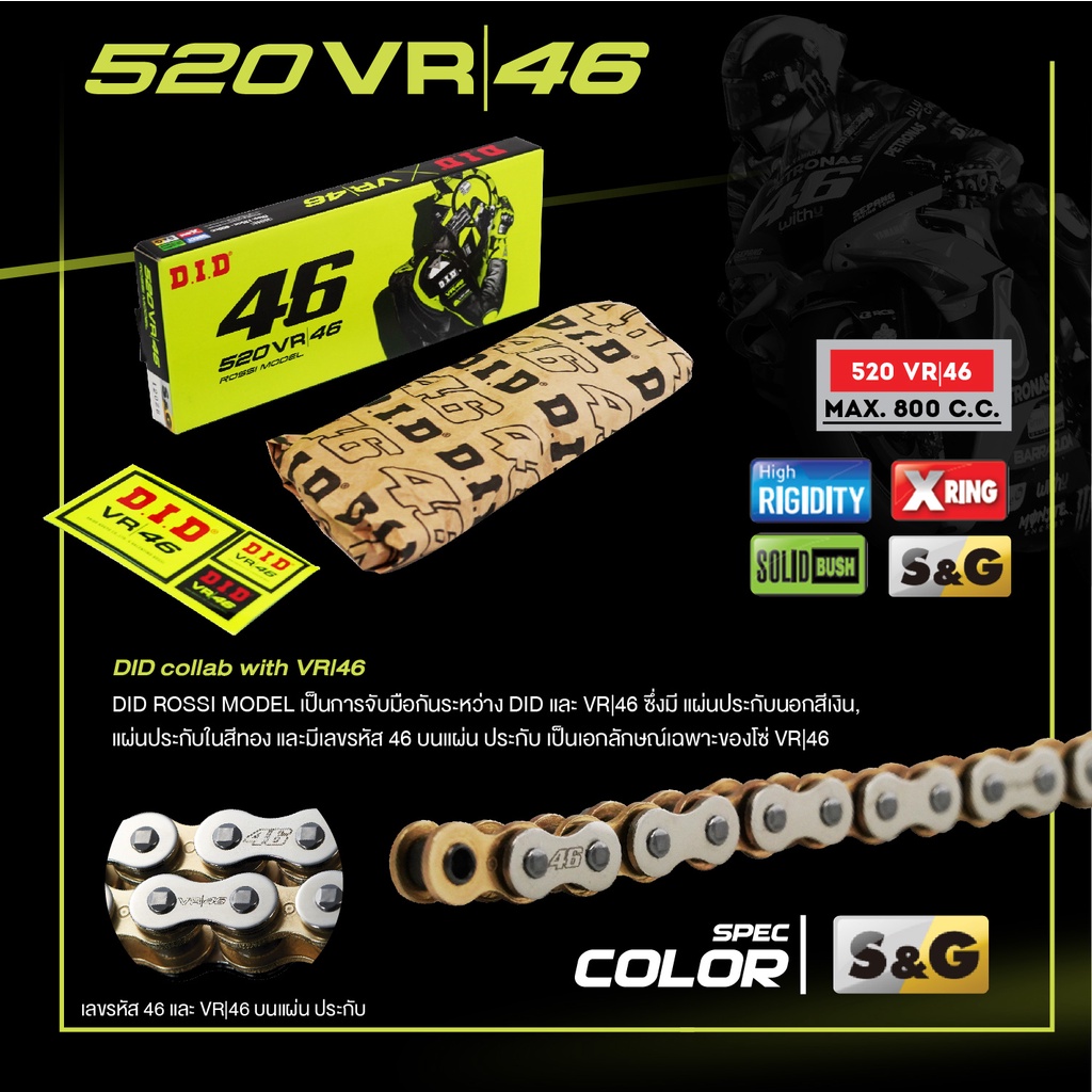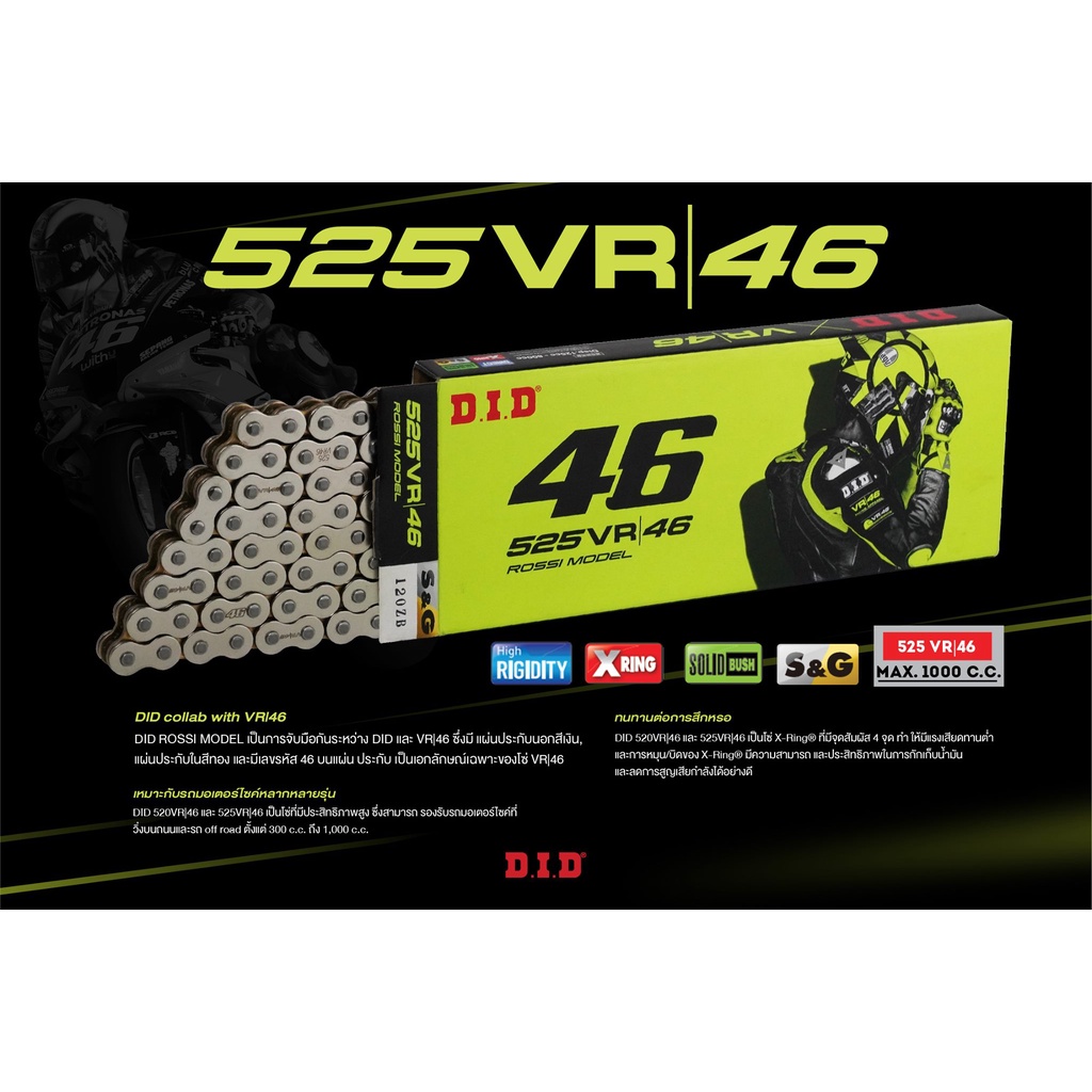 D.I.D โซ่รถจักรยานยนต์ 520/525 VR 46 S&G 120 ZB (X-Ring)