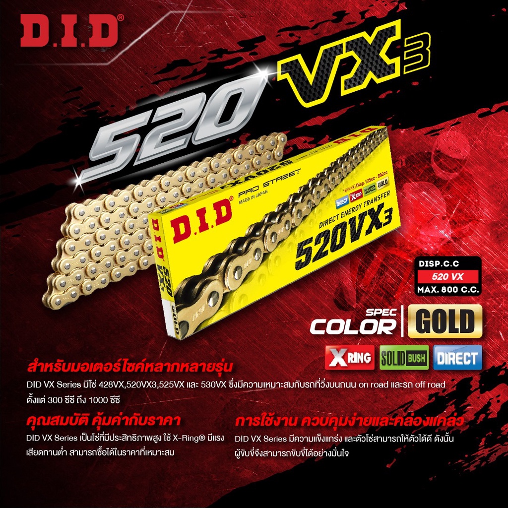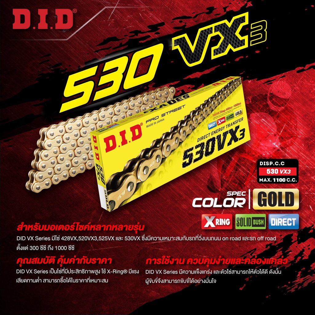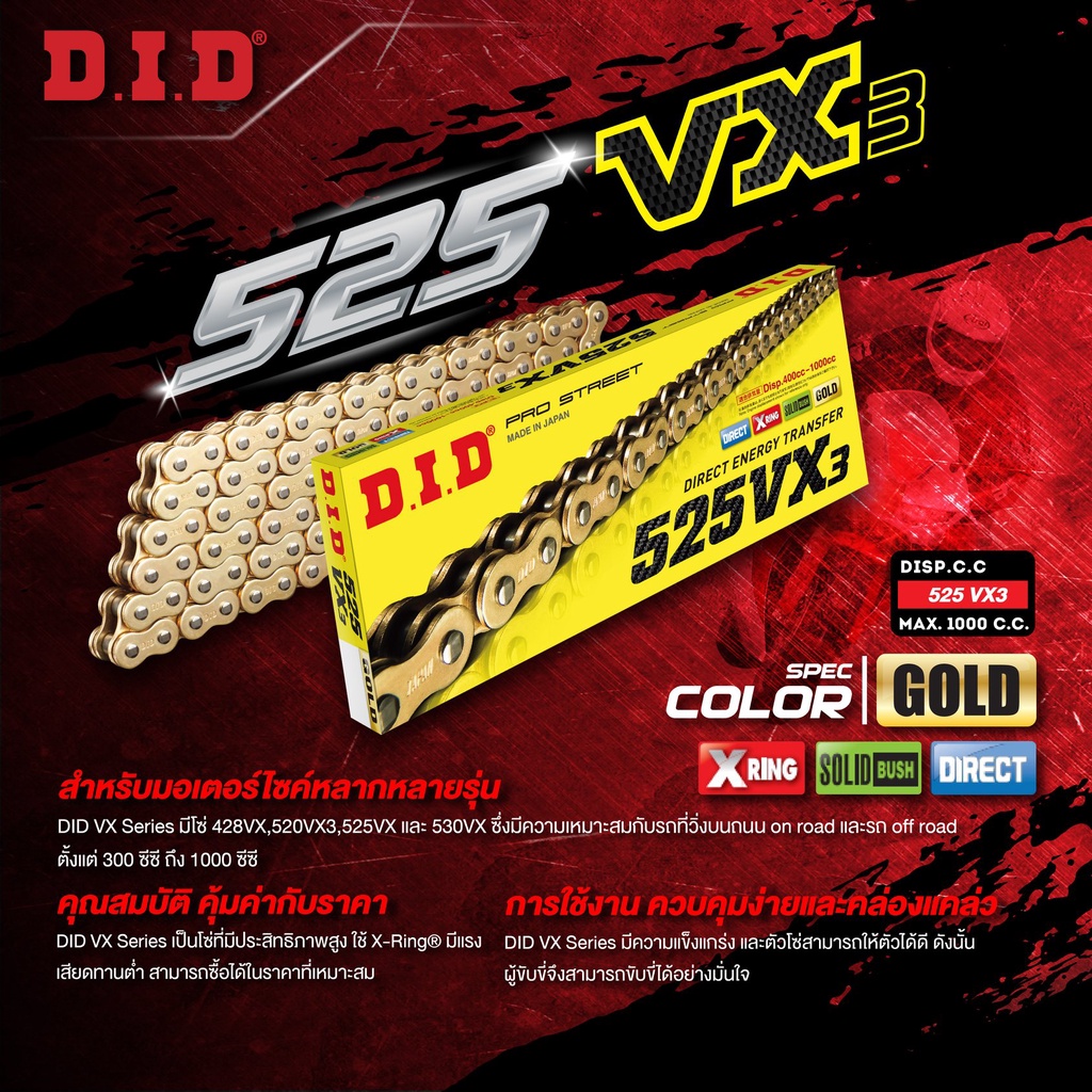 D.I.D โซ่รถจักรยานยนต์ VX3 Series G&G 120 ZB (X-Ring)