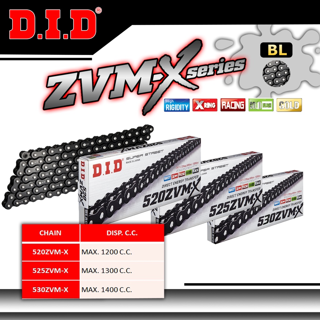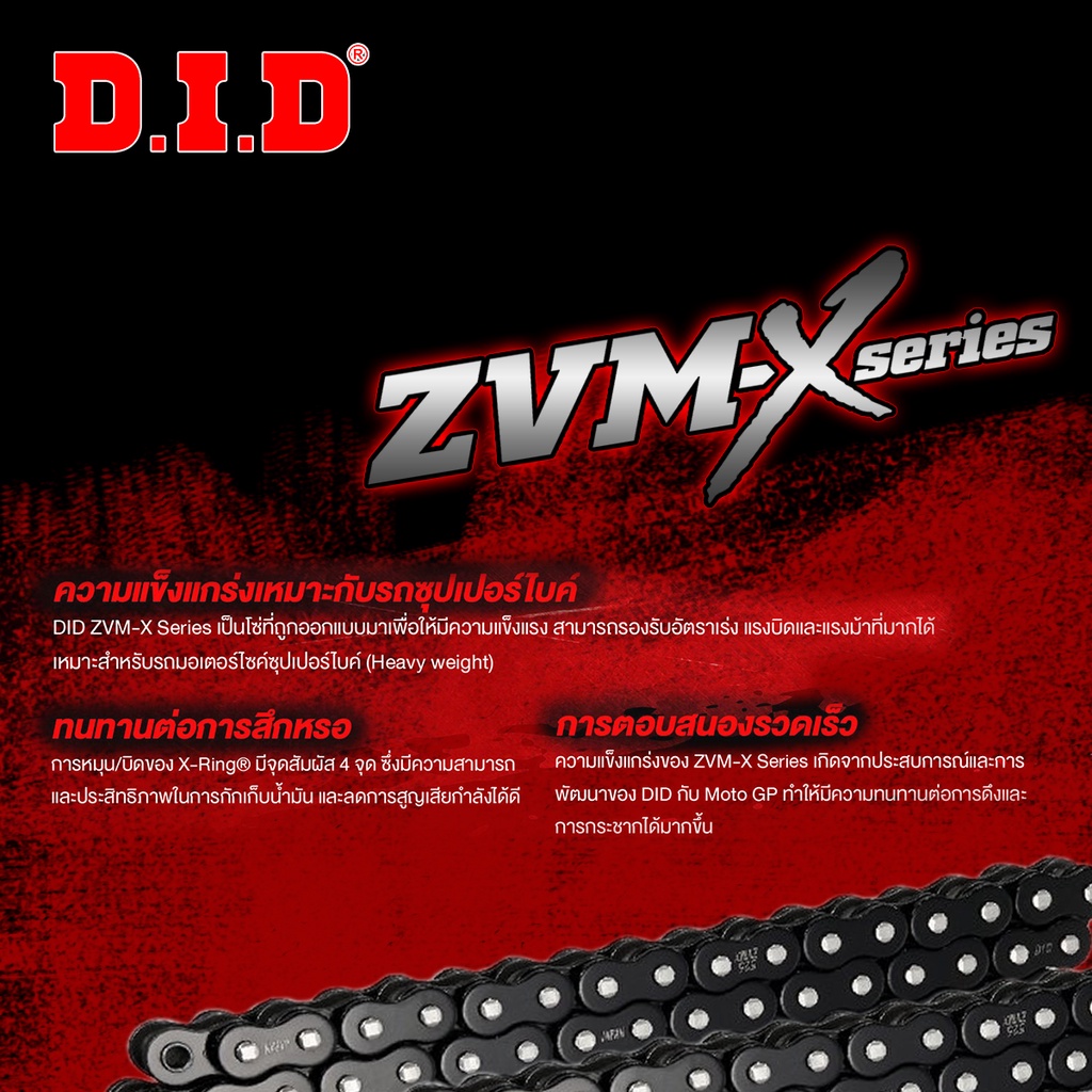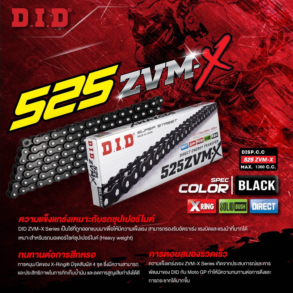 D.I.D โซ่รถจักรยานยนต์ ZVM-X Black 120 ZB (X-Ring) สีดำ