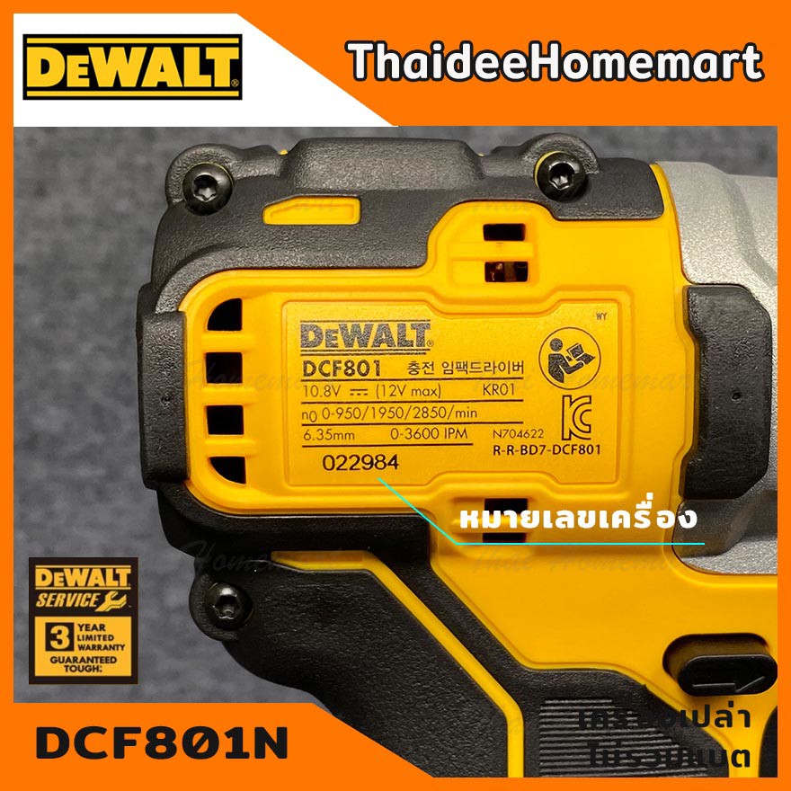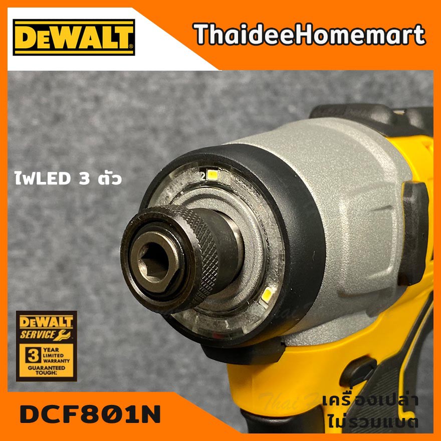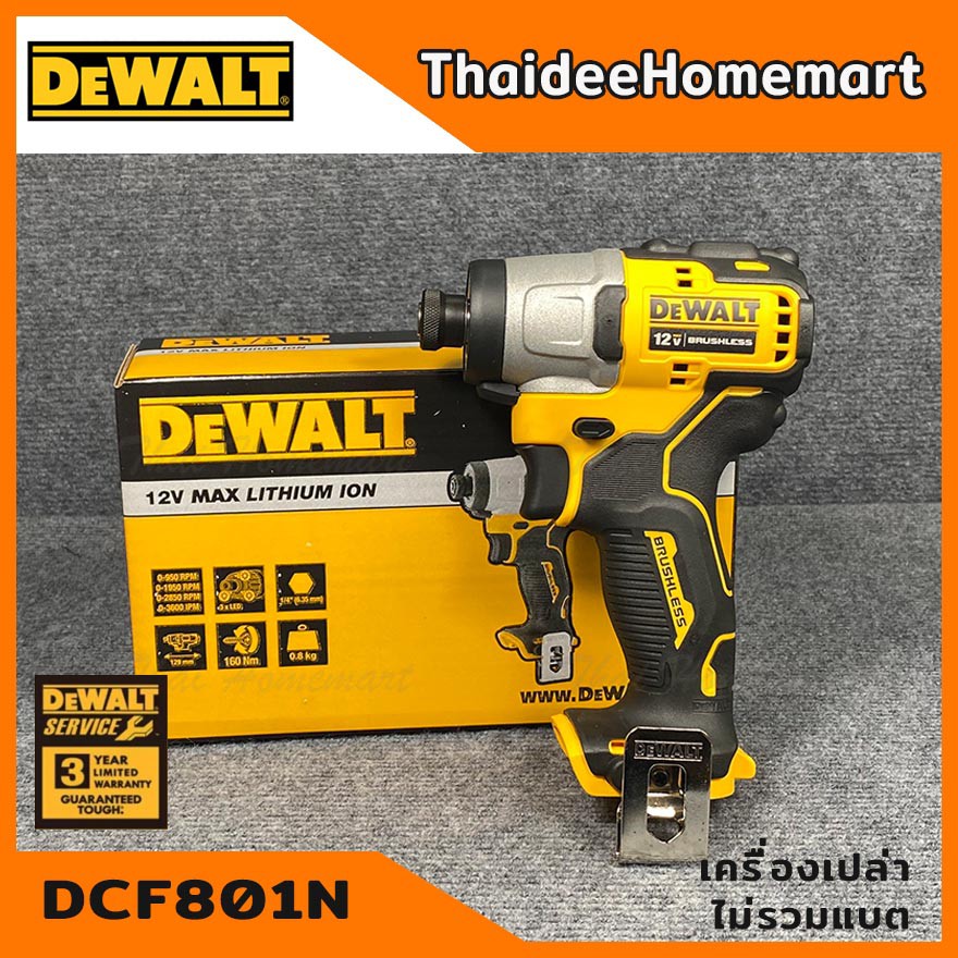 DEWALT PT ไขควงกระแทกไร้สาย 12V DCF801N (ตัวเปล่า) รับประกันศูนย์ 3 ปี 160 Nm