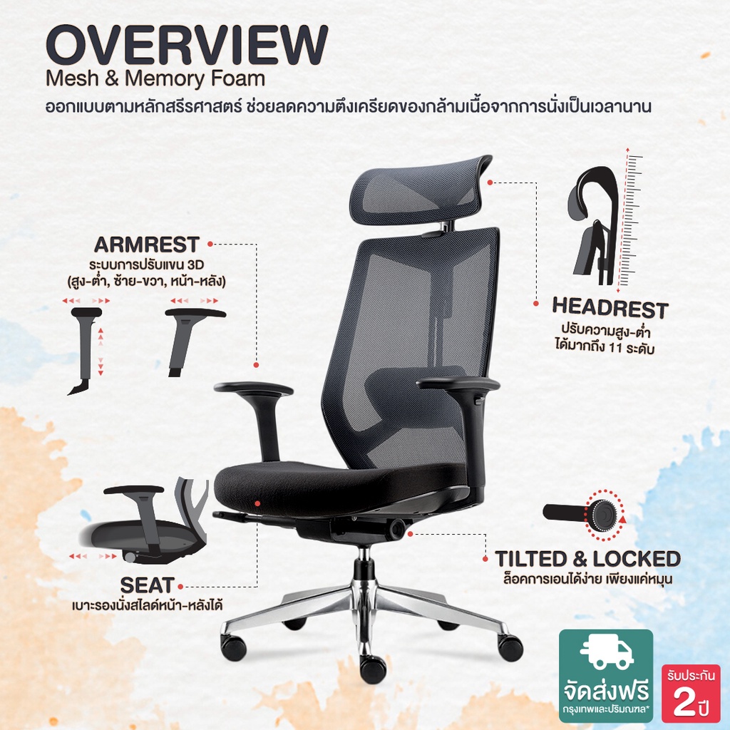 DF Prochair | เก้าอี้เพื่อสุขภาพ รุ่น A-Cor Chair H