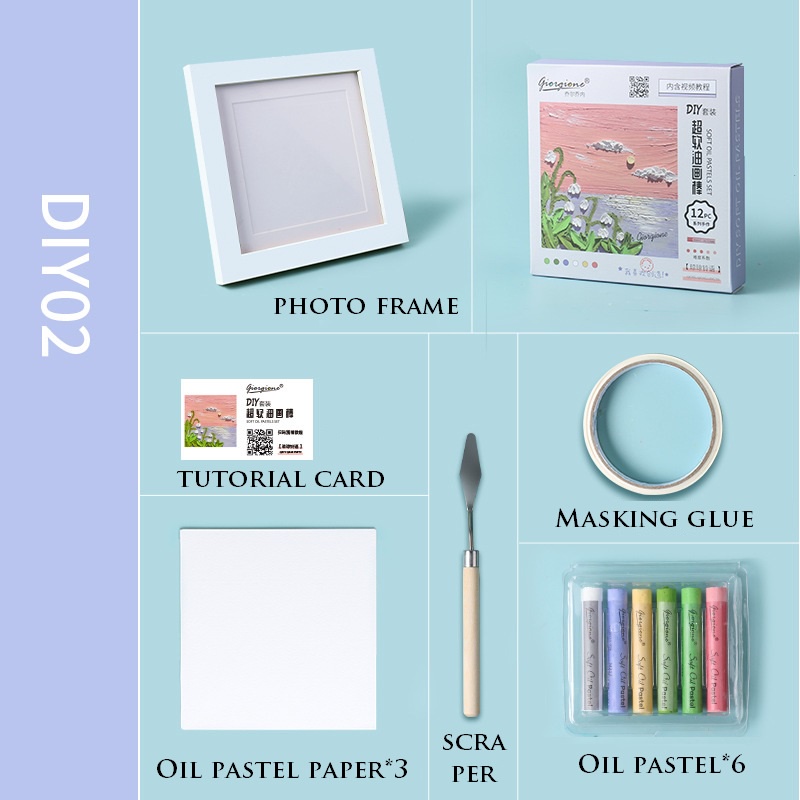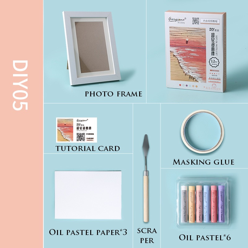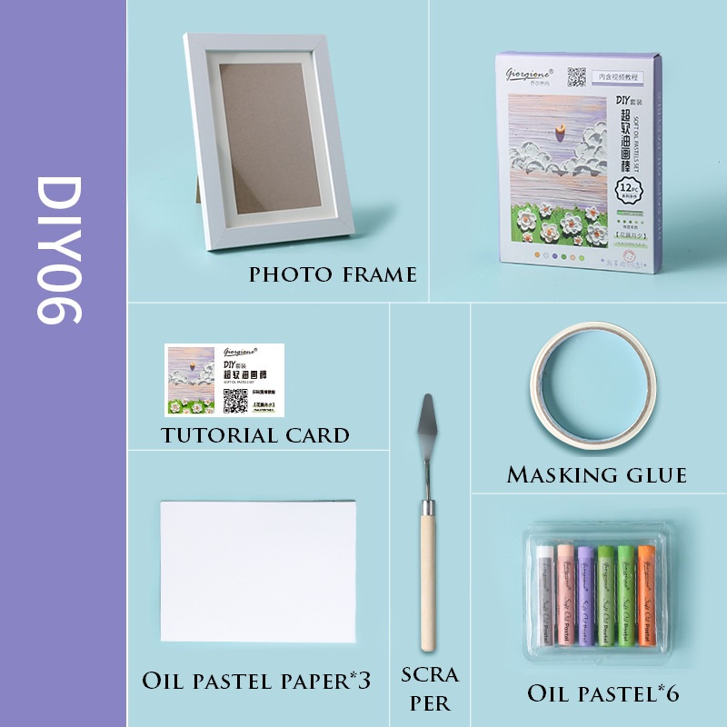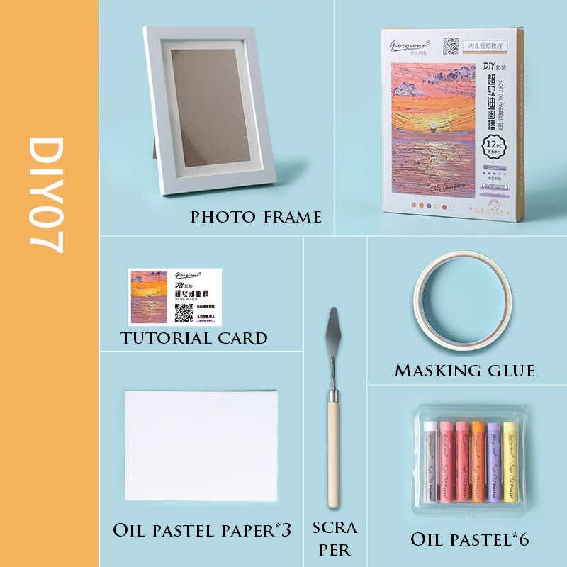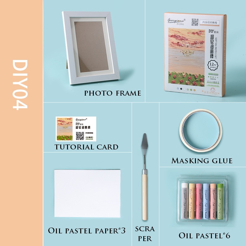 DIY super soft heavy color oil painting stick set 6 colors with photo frame scraper oil painting stick special paper
