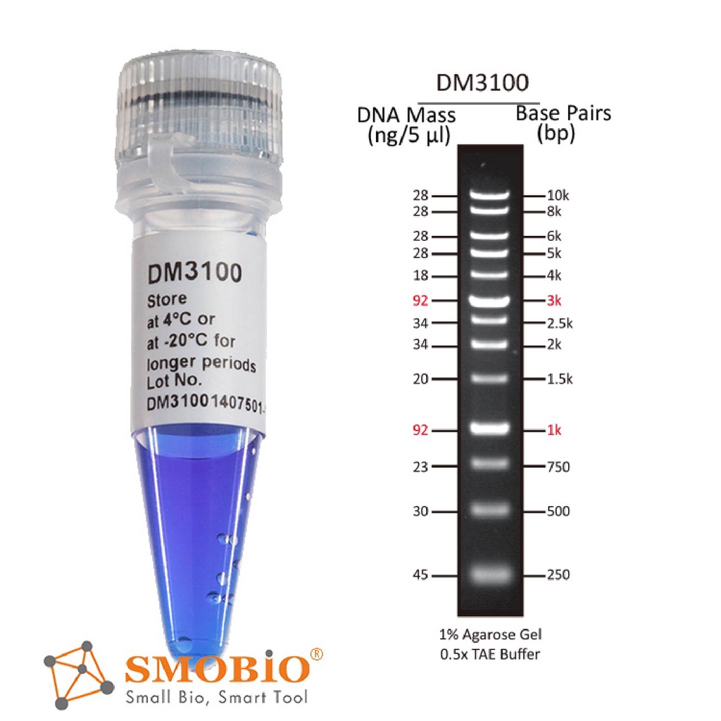 DM3100 ExcelBand DNA Ladder 1KB (0.25-10 kb) 500 uL DNA Marker PCR gel electrophoresis SMOBIO