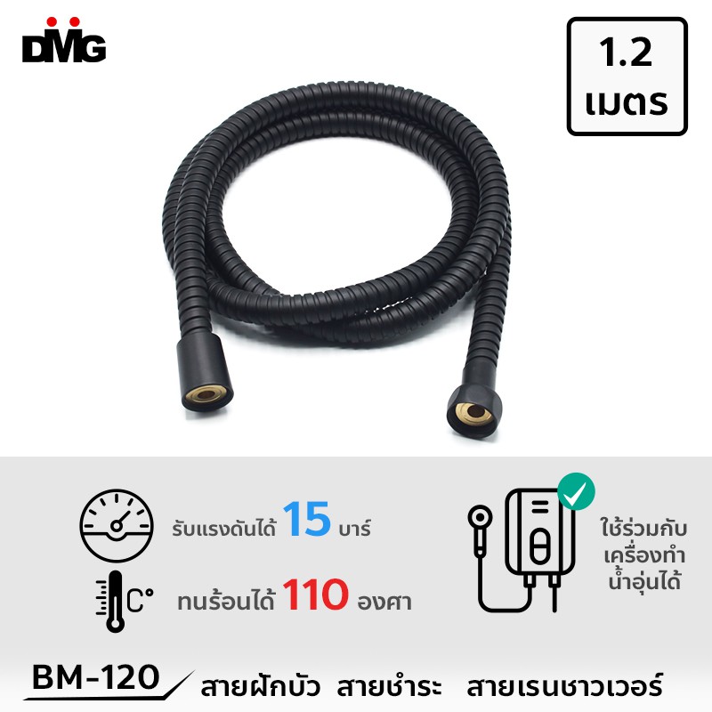 DMG ชุดฝักบัวสีดำ พร้อมสาย 1.2 เมตร พร้อมขายึดครบชุด รุ่น BM-1404