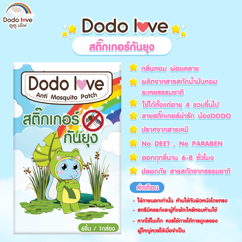 DODOLOVE สติ๊กเกอร์กันยุง แผ่นแปะ กันยุง กลิ่นน้ำมันตะไคร้หอม