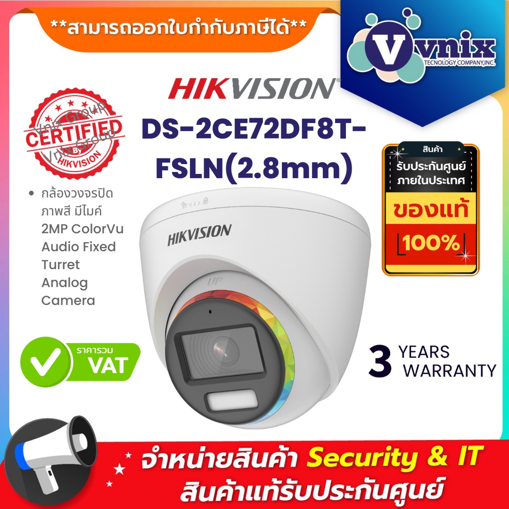 DS-2CE72DF8T-FSLN(2.8mm) กล้องวงจรปิด ภาพสี มีไมค์ Hikvision 2MP ColorVu Audio Fixed Turret Analog Camera by Vnix Group