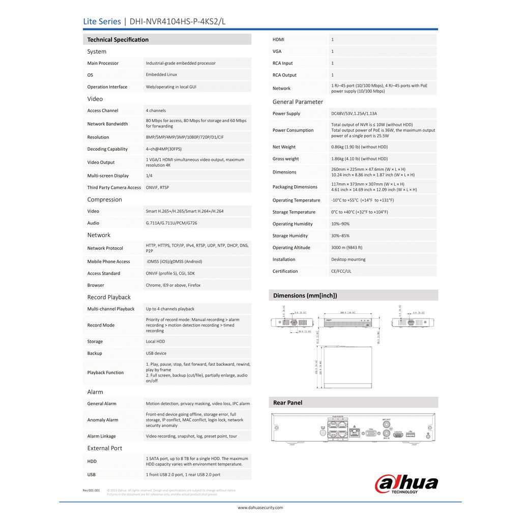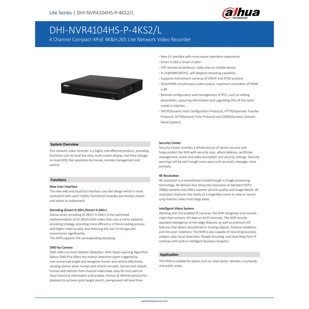 NVR4104HS-P-4KS2/L เครื่องบันทึกภาพ กล้องวงจรปิด Dahua NVR 4ch Compact 1U 1HDD 4PoE By Vnix Group
