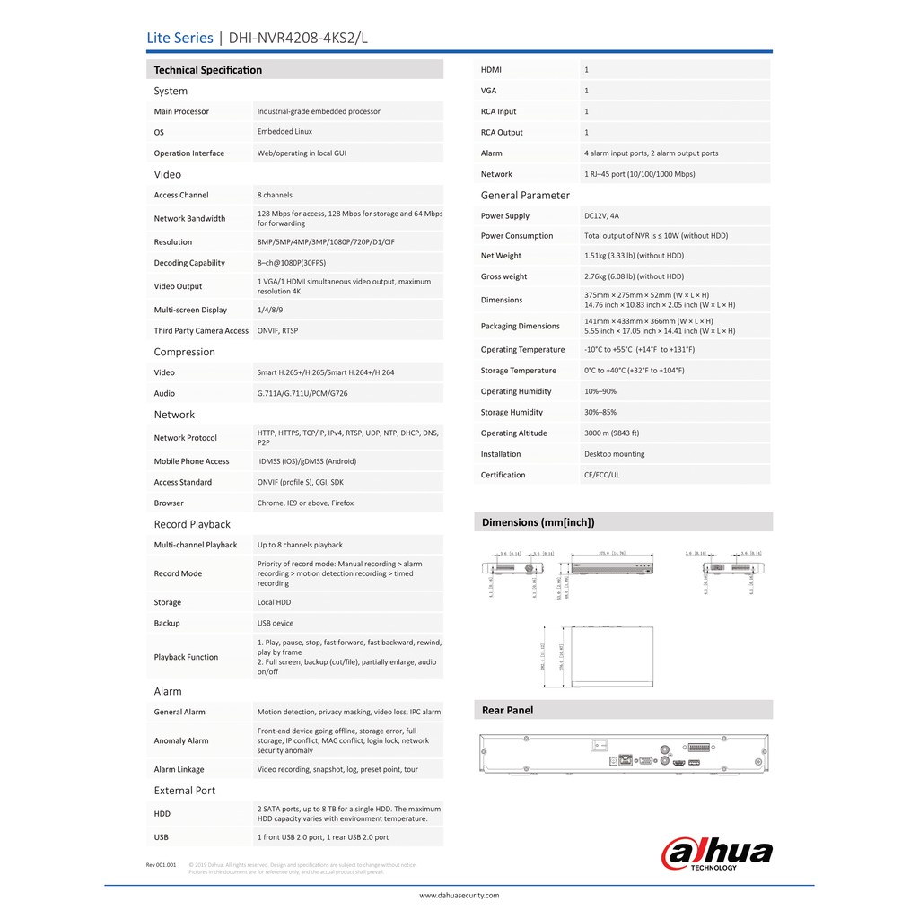 NVR4208-4KS2/L เครื่องบันทึกภาพ กล้องวงจรปิด Dahua 8ch 1U 2HDD NVR by Vnix Group