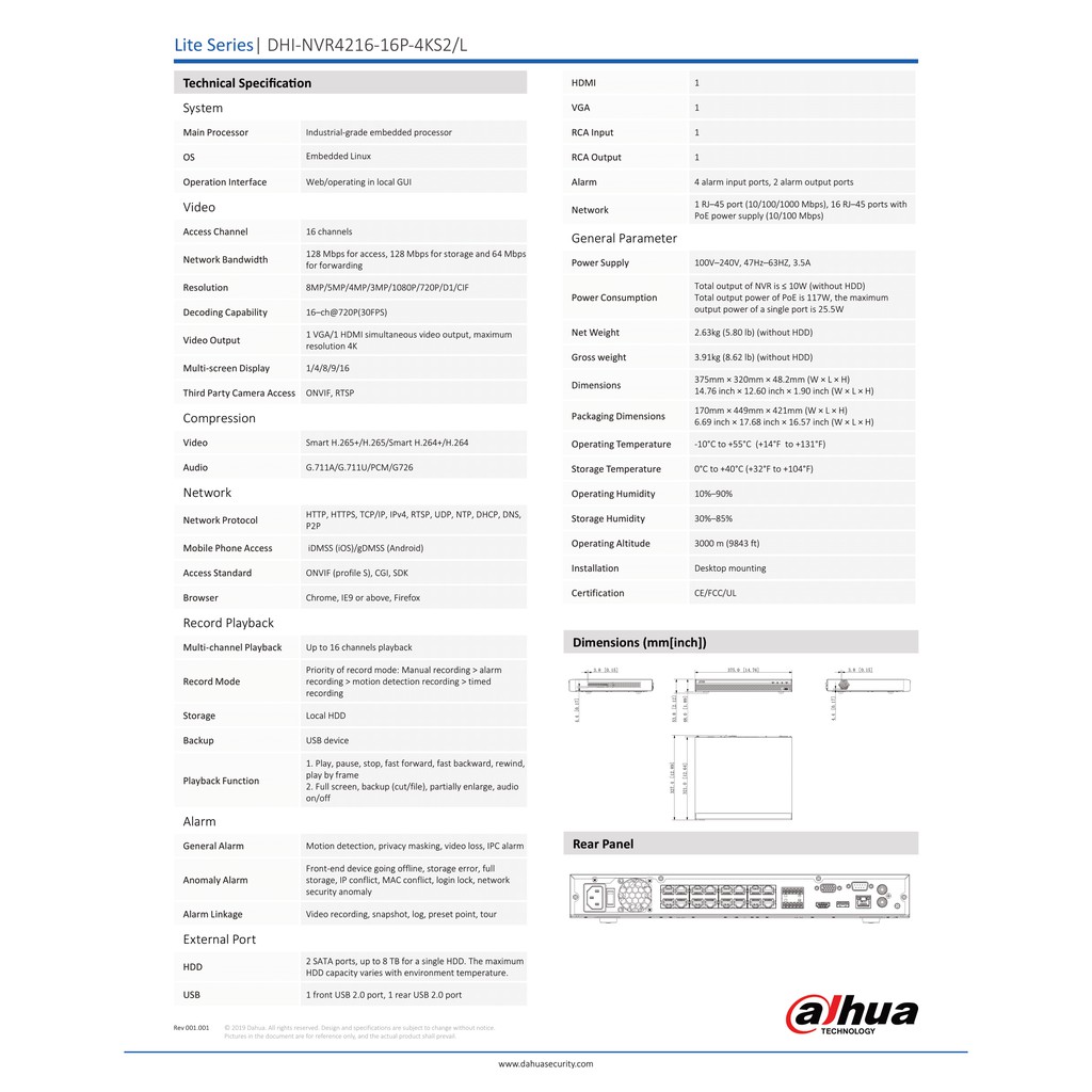 NVR4216-16P-4KS2/L เครื่องบันทึกภาพ กล้องวงจรปิด Dahua 16ch 1U 2HDDs 16PoE NVR by Vnix Group
