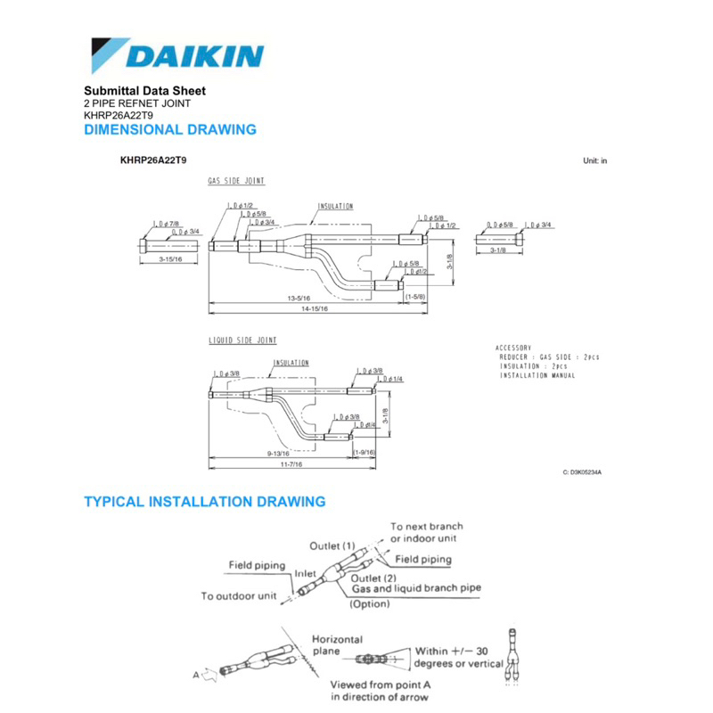 Daikin REFNET JOINT Model : KHRP26A22T9, 2 PIPE REFNET JOINT.