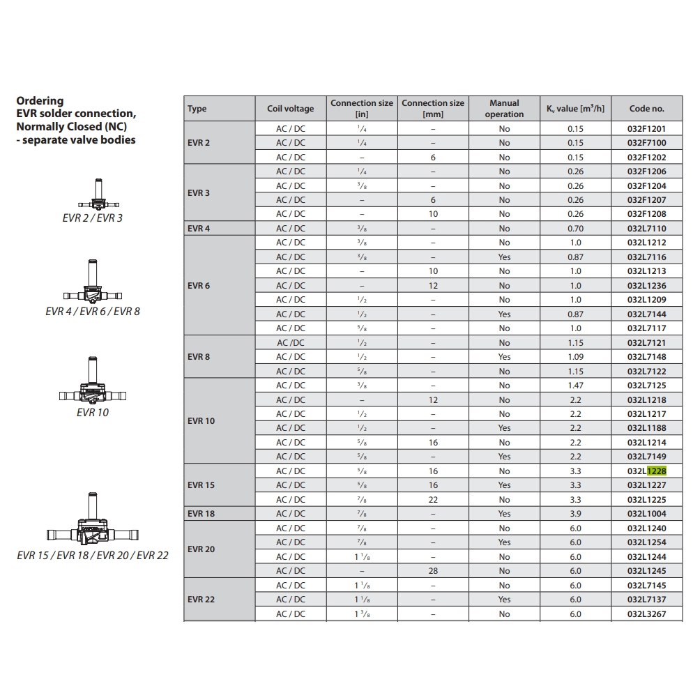 Danfoss 032L1228 Solenoid valve, EVR 15, SOLDER, ODF, Function: NC 5/8