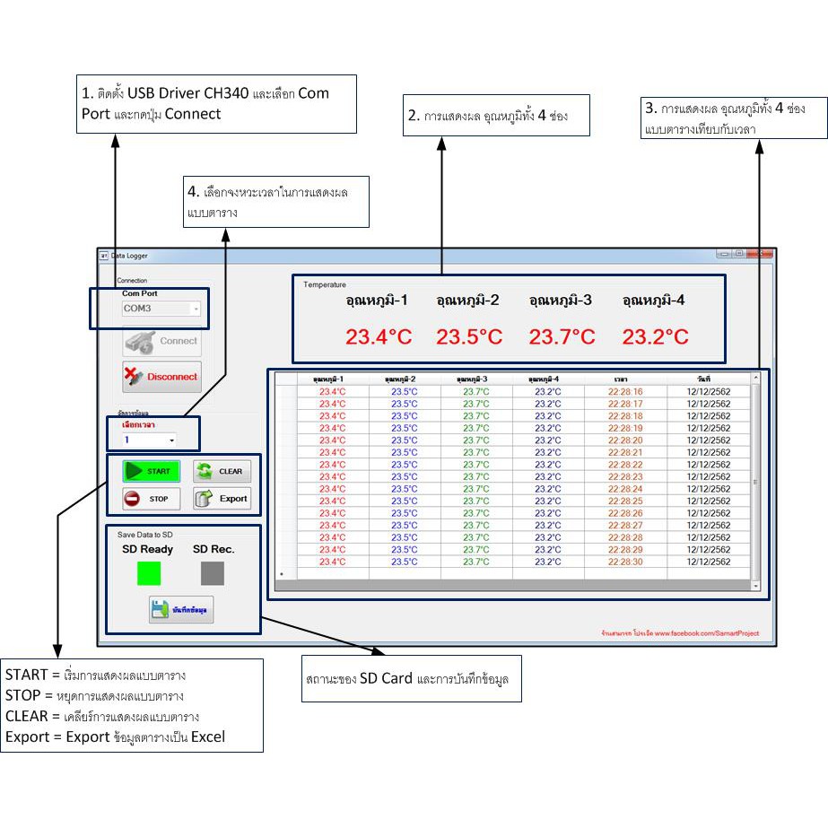 Data Logger Temperature 4 Channels (App. & Software)