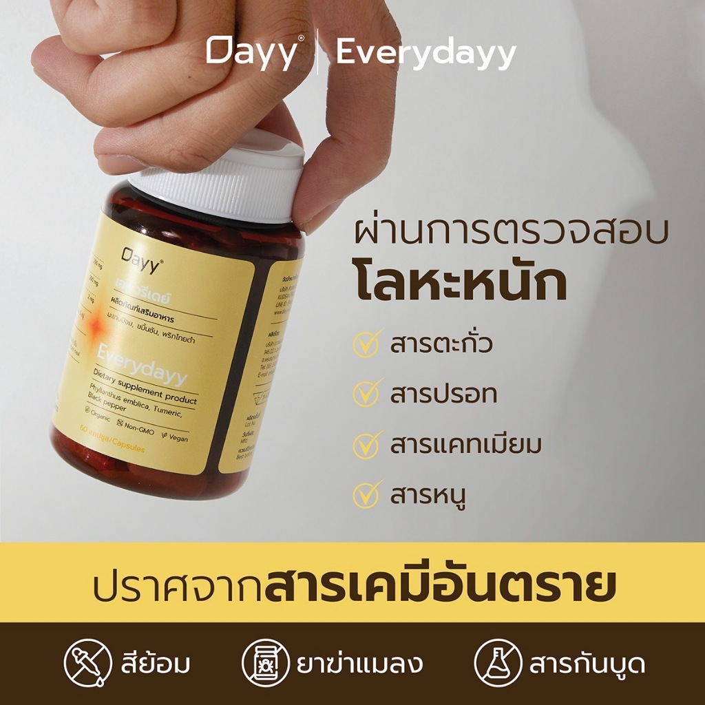 [Organic] Dayy Everydayy ขมิ้นชัน พริกไทยดํา มะขามป้อมออร์แกนิค 60แคปซูล Everydayy Organic Tumeric Pepper Amla