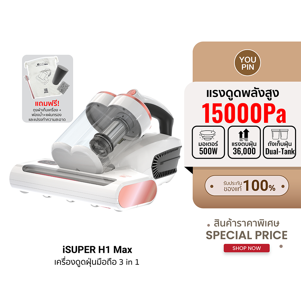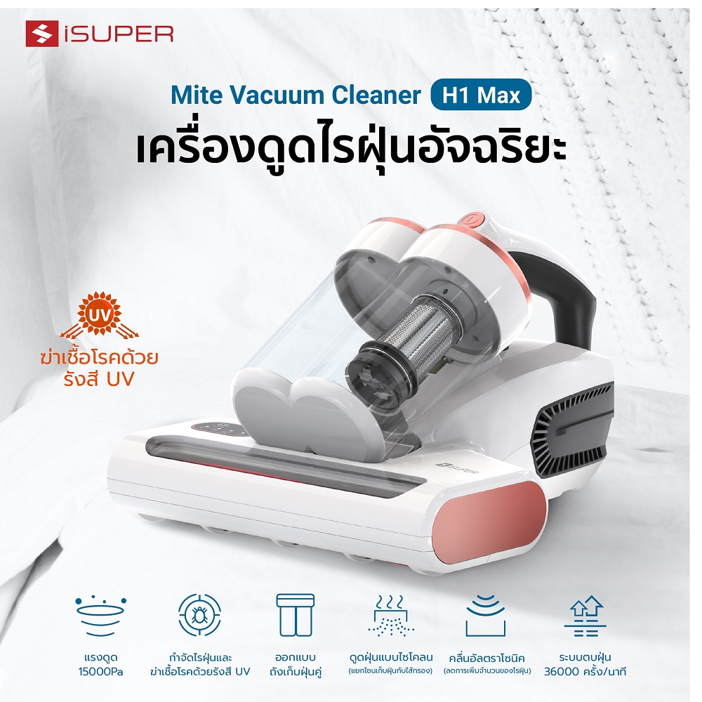 [ประกันศูนย์ไทย 1 ปี] iSUPER Anti Mites Vacuum Cleaner H1 Max เครื่องดูดไรฝุ่น เครื่องกำจัดไรฝุ่น แรงดูด 15,000 Pa -1Y