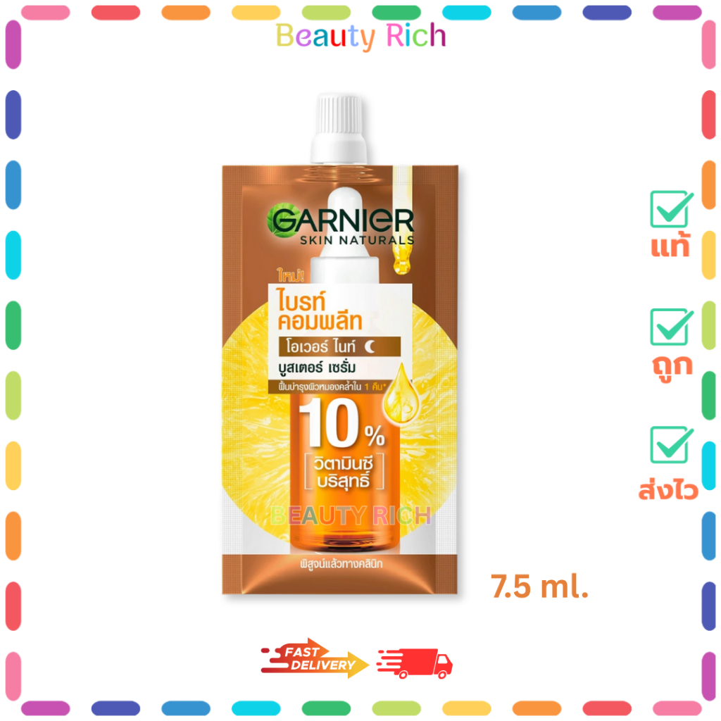 (1 ซอง) Garnier การ์นิเย่ ไบรท์ คอมพลีท โอเวอร์ไนท์ บูสเตอร์ เซรั่ม (7.5 ml.)