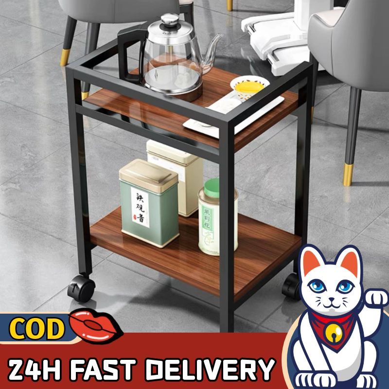 Lucky😸มีพร้อมส่ง โต๊ะขนาดเล็กอเนกประสงค์ น้ำหนักเบาท็อปไม้อัดMDF เคลื่อย้ายสะดวกพร้อมล้อ มี3สี