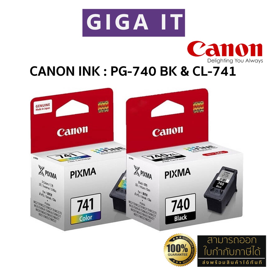 หมึกพิมพ์ Canon PG-740 (ดำ) & CL-741 (สี) หมึกตลับแท้ 100% มีกล่องแท้, พิมพ์ 180 หน้า, ประกันศูนย์แคนนอน 6 เดือน