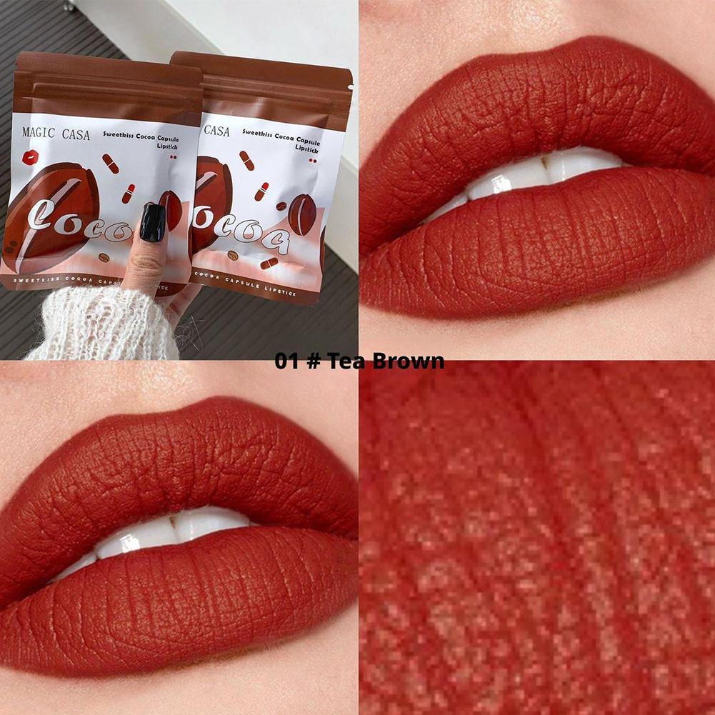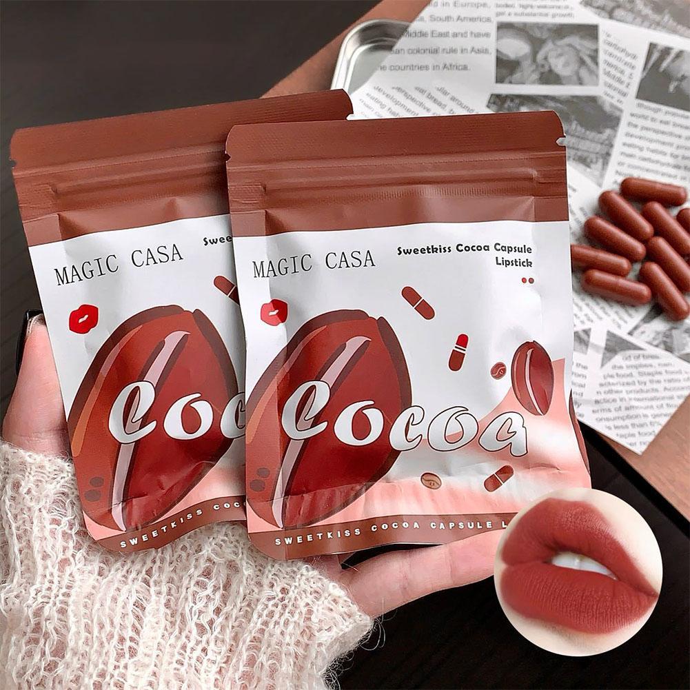 10ชิ้น/เซ็ตลิปสติกกันน้ําติดทนนานช็อคโกแลตแคปซูลลิปสติกจิตเคลือบลิปกลอสลิปทินท์สีแดงลิปแต่งหน้า