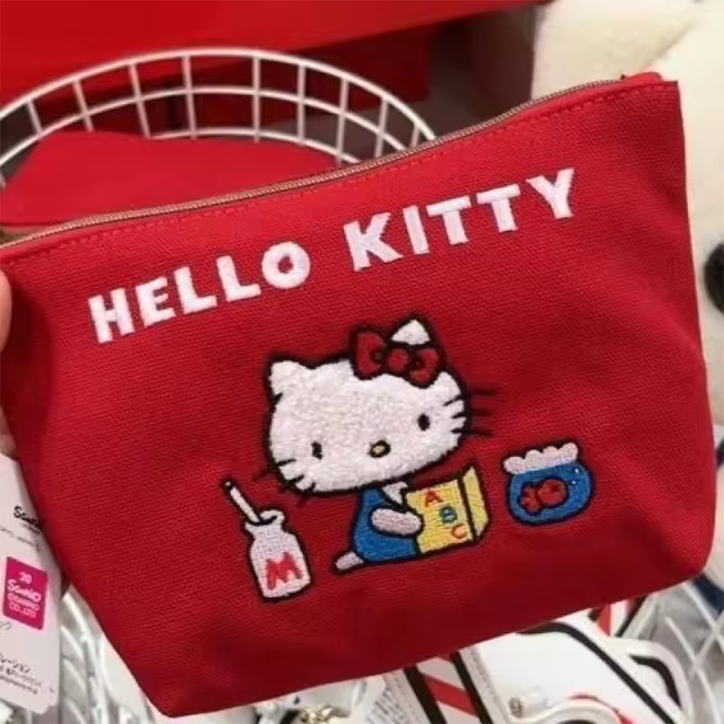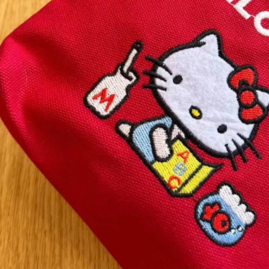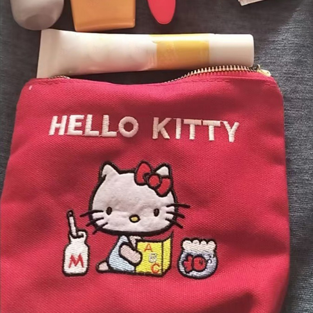 การ์ตูน Hello Kitty ลิปสติกกระเป๋าแต่งหน้า Sanrio เย็บปักถักร้อย Storagebag กระเป๋าพกพา