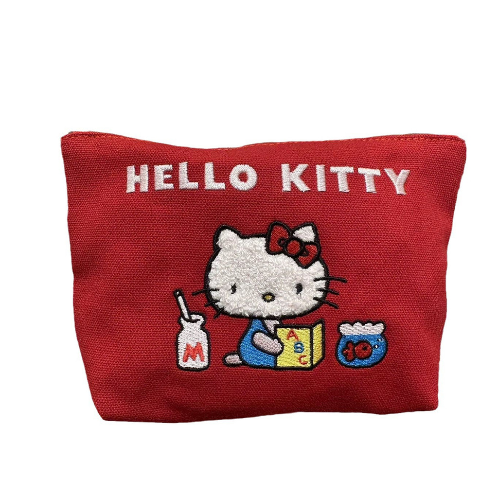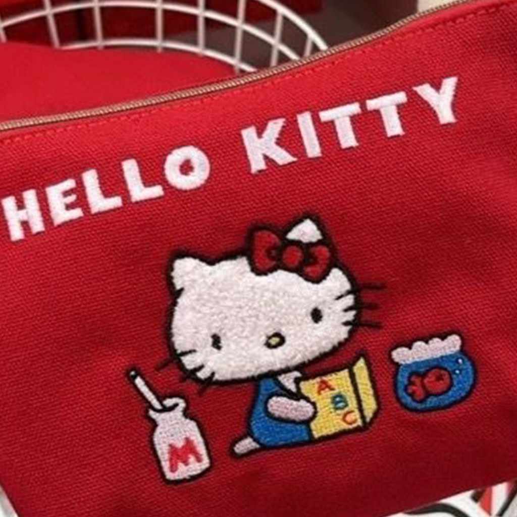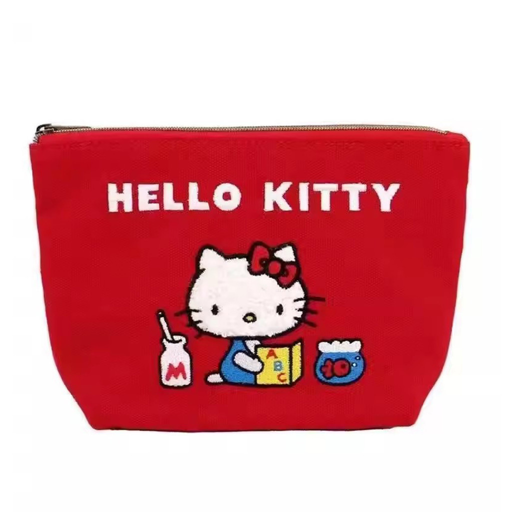 การ์ตูน Hello Kitty ลิปสติกกระเป๋าแต่งหน้า Sanrio เย็บปักถักร้อย Storagebag กระเป๋าพกพา