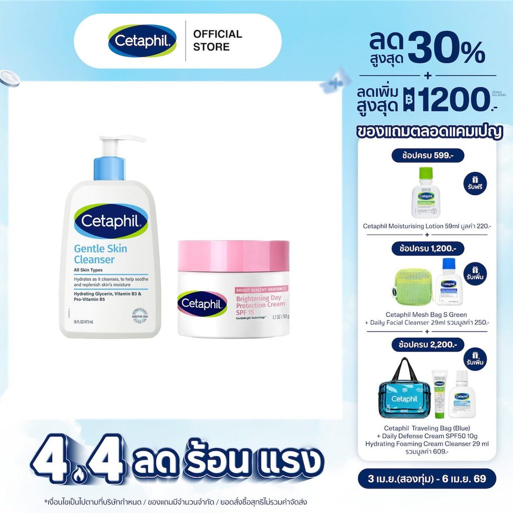 [เซ็ตสุดคุ้ม] เซตาฟิล Cetaphil Gentle Skin Cleanser 473 ml. + Bright Healthy Radiance Brightening Day Cream SPF 15 50g